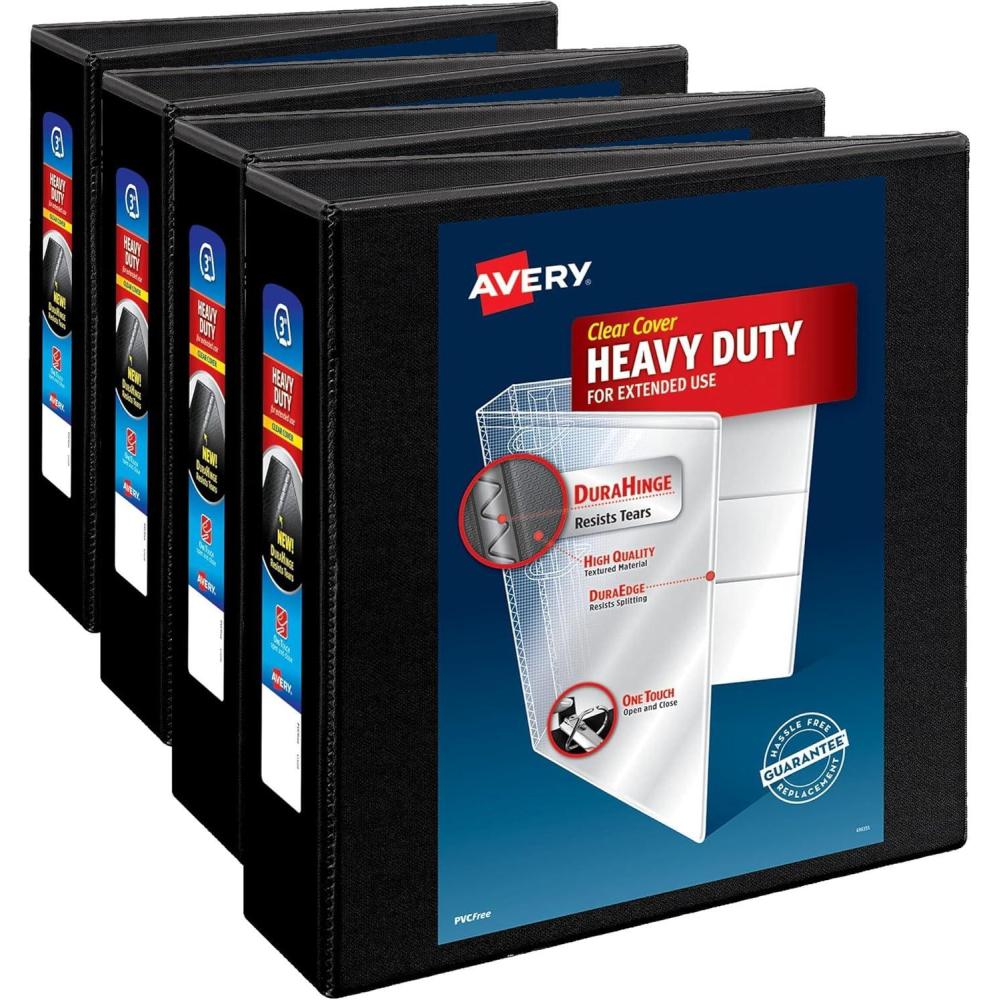Avery Heavy-Duty View 3 Ring Binder, 3 Inch One Touch Slant Rings, 3.5″ Spine, 1 Black Binder (79100)(One Size (Pack of 4))