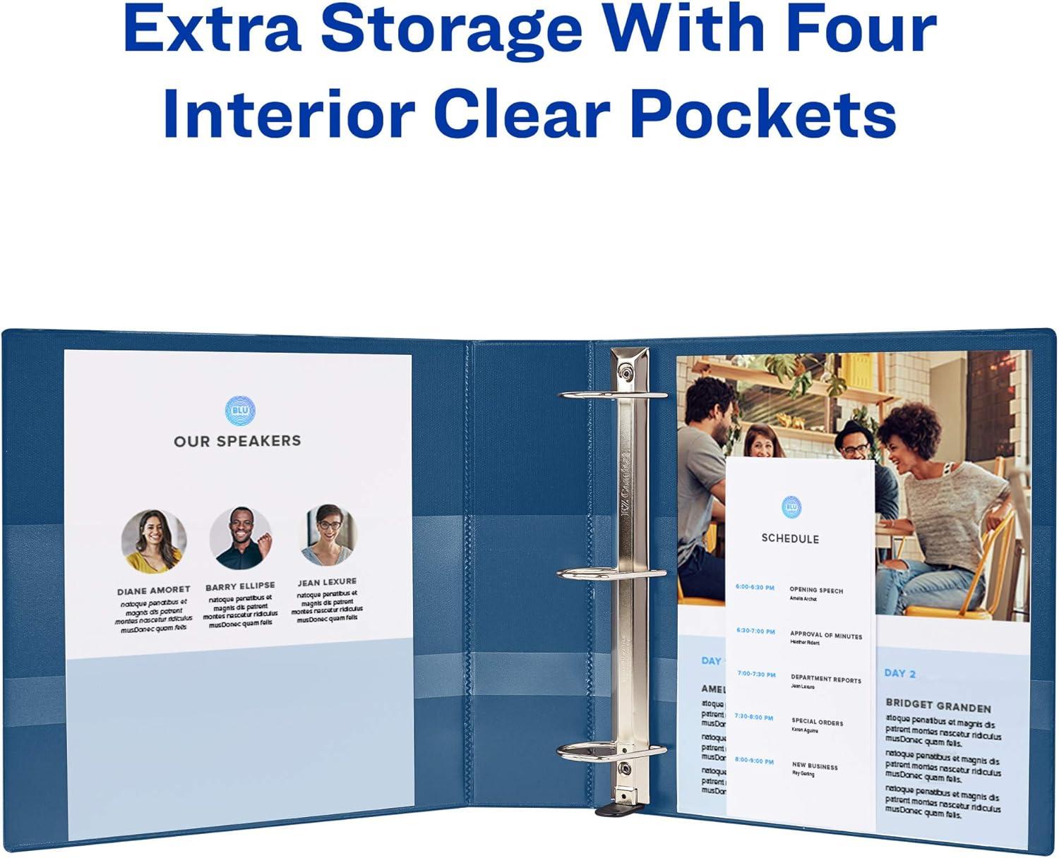 Enjoy additional storage in each 3 inch binder with the four interior clear pockets made from nonstick PVC-free material designed to prevent ink transfer