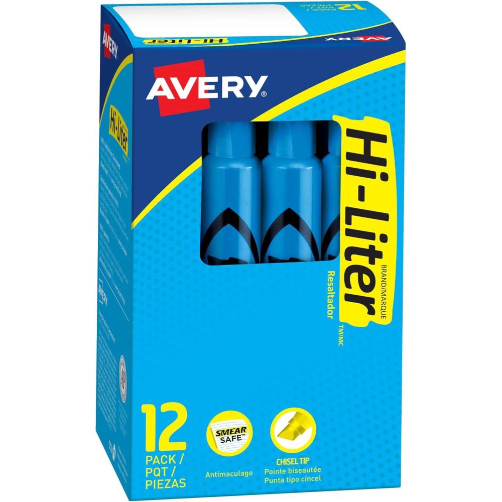 AVERY Hi-Liter Desk-Style Highlighters, Smear Safe Ink, Chisel Tip, 12 Fluorescent Blue Highlighters (24016)(12 Count (Pack of 12))