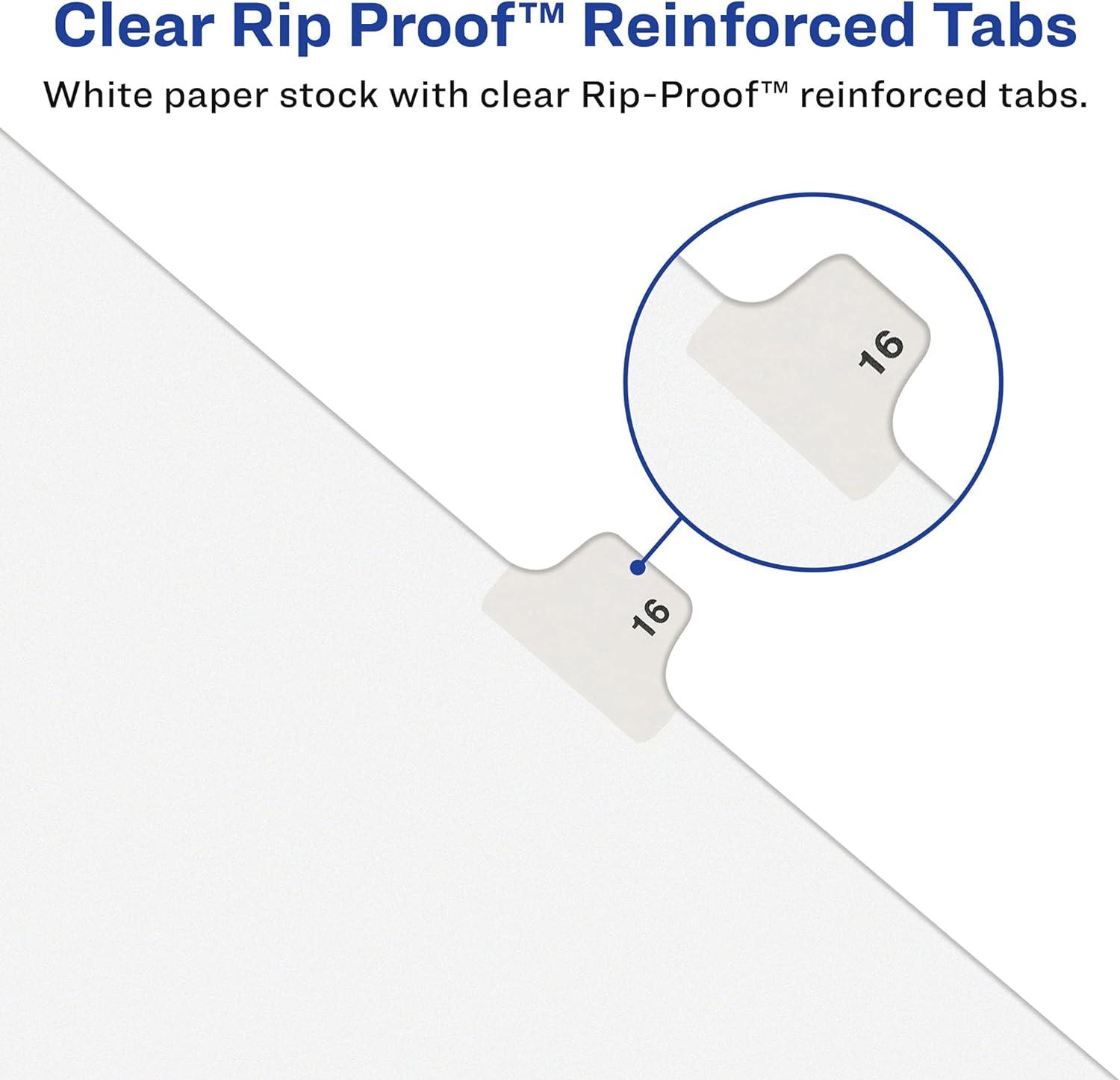 When you're assembling your case for organized files, consider these Avery Individual Legal Dividers. This set contains 25 dividers printed with the same tab. Use these dividers to organize your index briefs, legal exhibits, mortgage documentation files and more. The crisp and clean white paper stock dividers give your files a professional appearance, and durable Rip Proof reinforced tabs are preprinted on both sides using Helvetica bold type so you can locate your information easily. The unpunched binding edges mean these indexes can fit practically any binding system. The verdict is in your files are organized beyond a reasonable doubt.