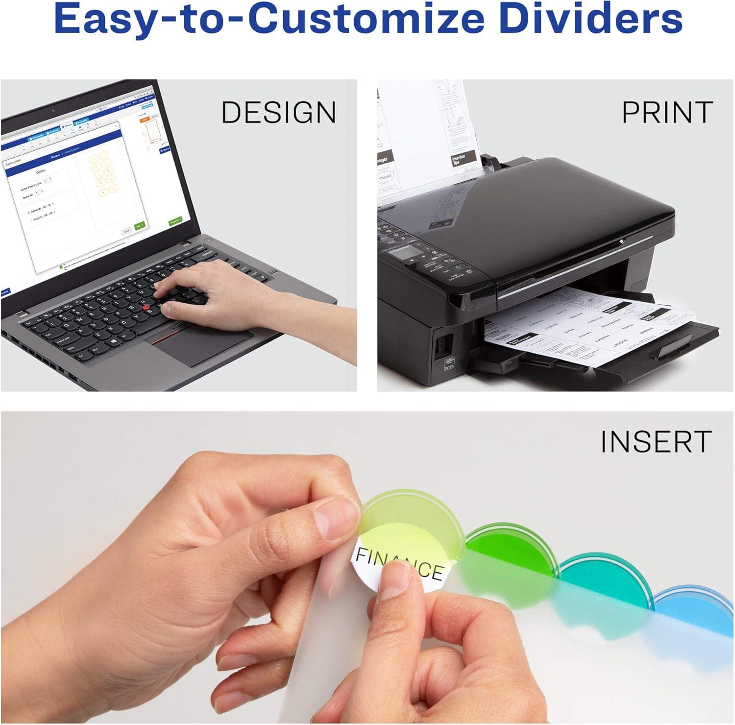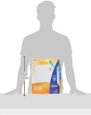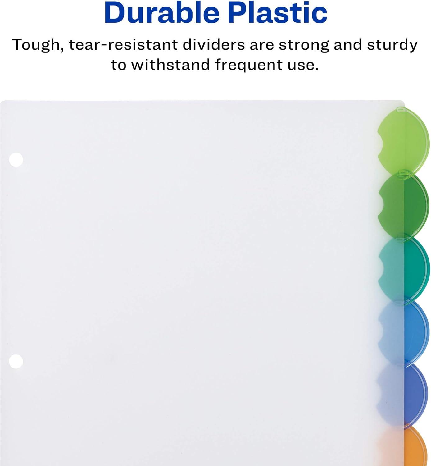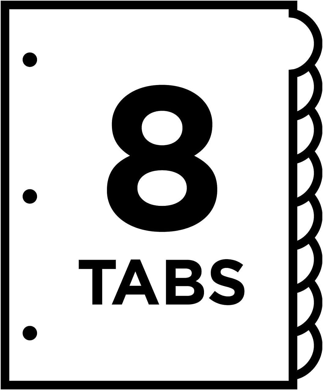 Avery 8-Tab Plastic Binder Dividers with Insertable Style Edge Tabs are a simple yet sophisticated solution to paper organization. Each binder divider with tabs is made of durable, tear-resistant PVC-free plastic, ideal for 3-ring binders with frequently referenced documents. Style Edge divider tabs give your dividers a modern look with a unique oval tab shape and are designed to keep your inserts locked in during use. With these page dividers, you're certain to achieve an organizational edge that's both colorful and attractive. Sturdy and built to withstand everyday use, this multicolor set of translucent plastic 8-tab binder dividers is great for organizing schoolwork, personal finances, recipes, coupons, sheet music, or anything else that needs sorting. These plastic dividers are 3-hole punched and ready for immediate use. For a clean, professional look, personalize your page tab inserts using free templates, fonts and designs on the Avery site. Inserts are compatible with laser and inkjet printers.