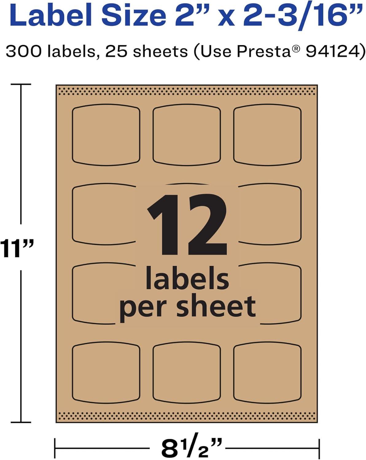 Avery Kraft Brown Arched Square Labels, Sure Feed Technology, 2″ x 2-3/16″, 180 Kraft Brown Labels, Print-to-The-Edge, Laser/Inkjet Printable(300 labels)