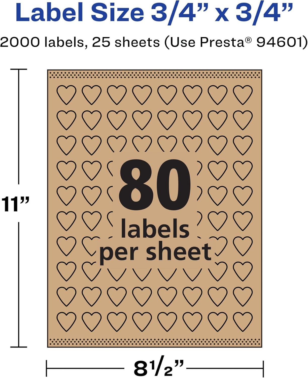 Avery Kraft Brown Heart Labels, Sure Feed Technology, 0.75″ x 0.75″, 1,200 Kraft Brown Labels, Print-to-The-Edge, Laser/Inkjet Printable(2 000 labels)