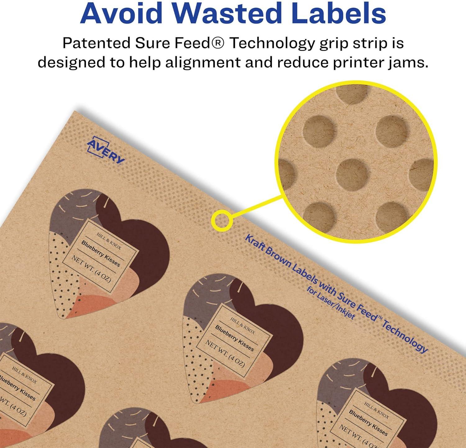 Avery Kraft Brown Heart Labels, Sure Feed Technology, 1.5″ x 1.5″, 300 Kraft Brown Labels, Print-to-The-Edge, Laser/Inkjet Printable(500 labels)