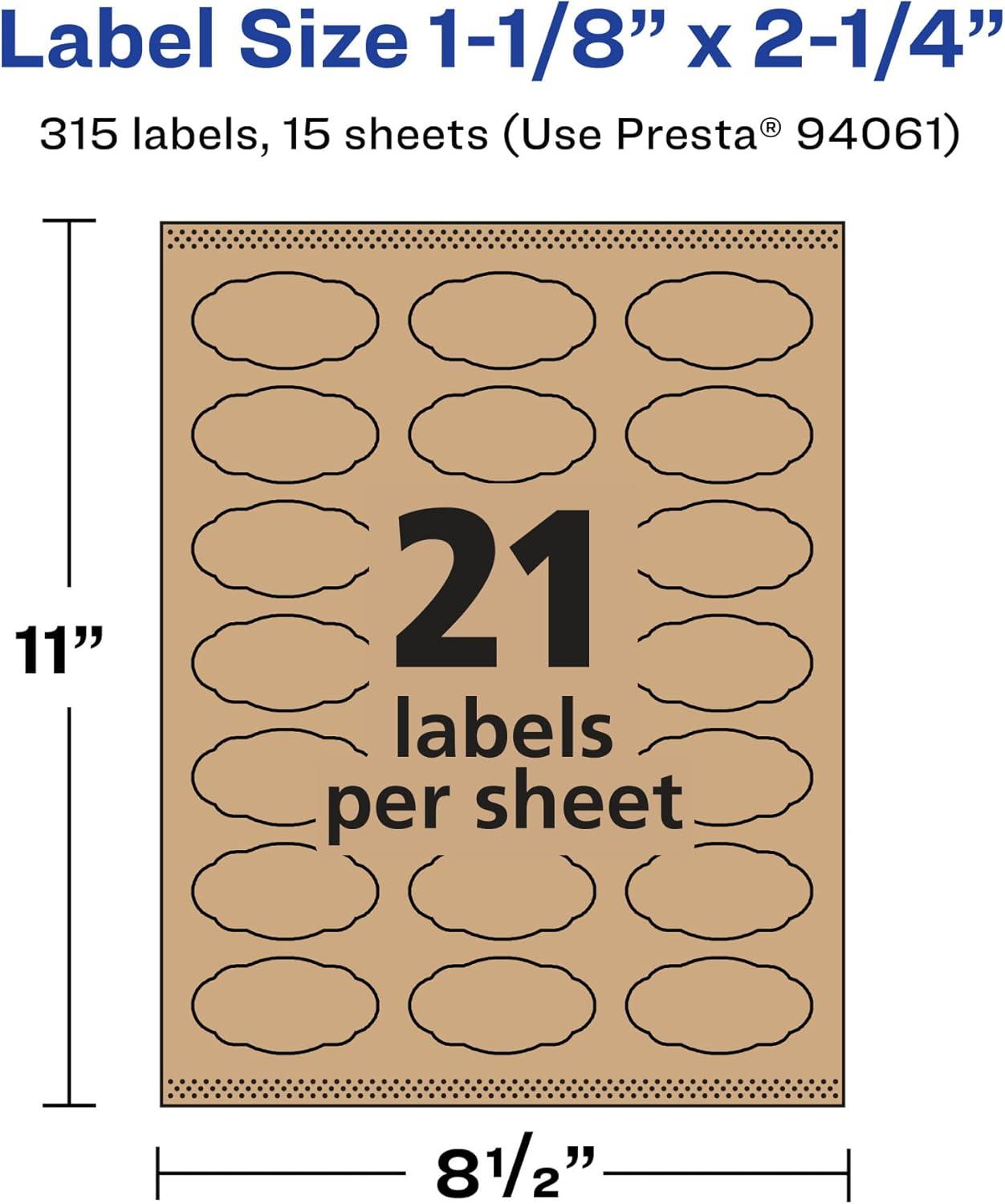Avery Kraft Brown Oval Scalloped Labels, Sure Feed Technology, 1-1/8" x 2-1/4", 315 Kraft Brown Labels, Print-to-The-Edge, Laser/Inkjet Printable(315 labels)