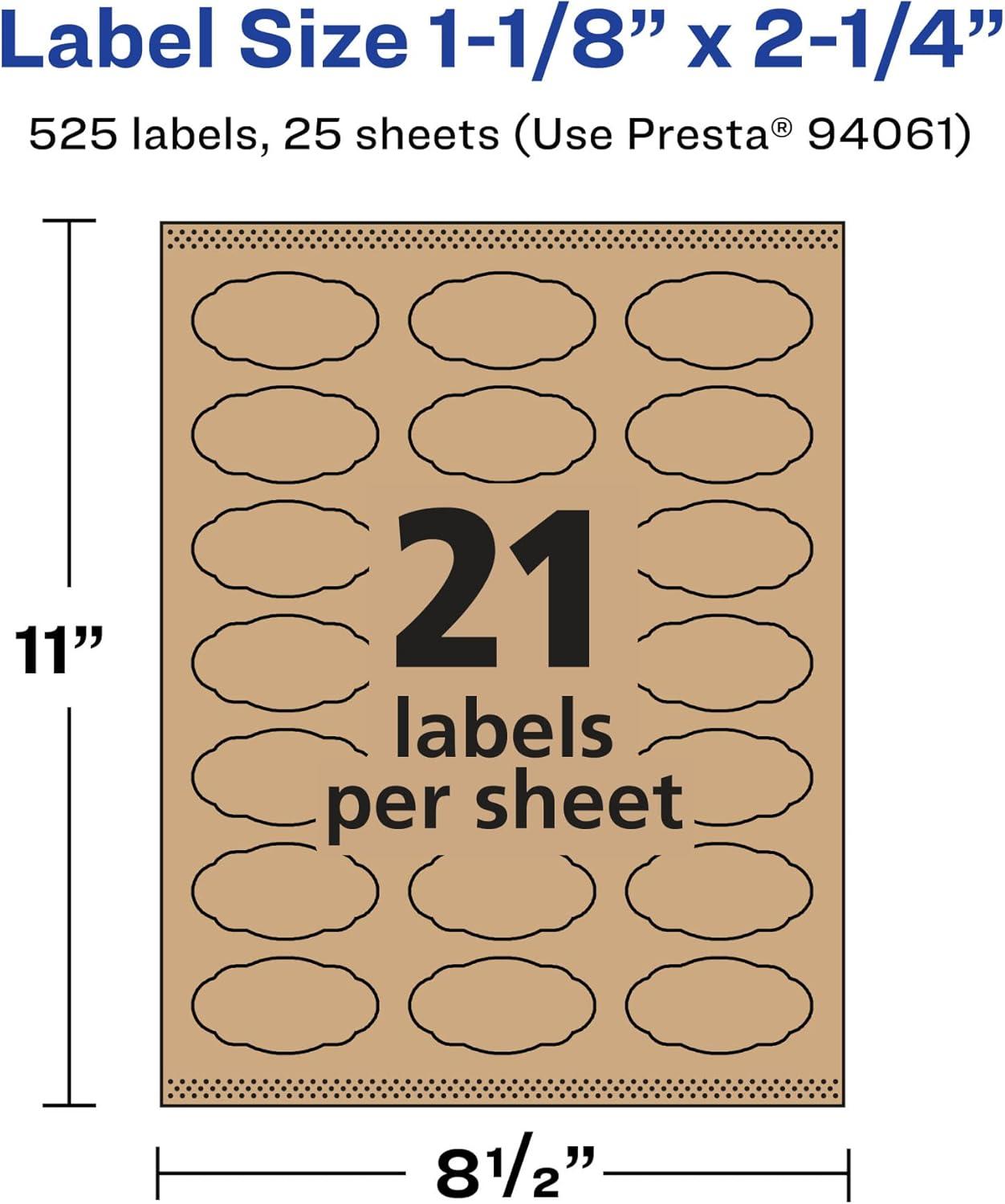 Avery Kraft Brown Oval Scalloped Labels, Sure Feed Technology, 1-1/8" x 2-1/4", 315 Kraft Brown Labels, Print-to-The-Edge, Laser/Inkjet Printable(525 labels)