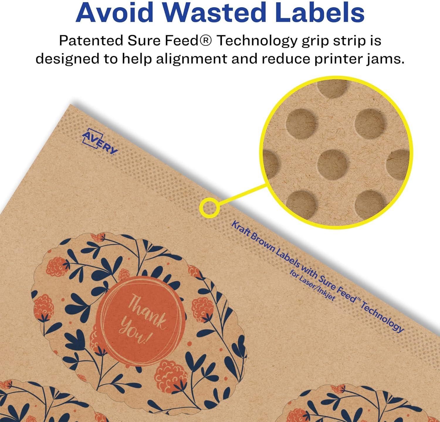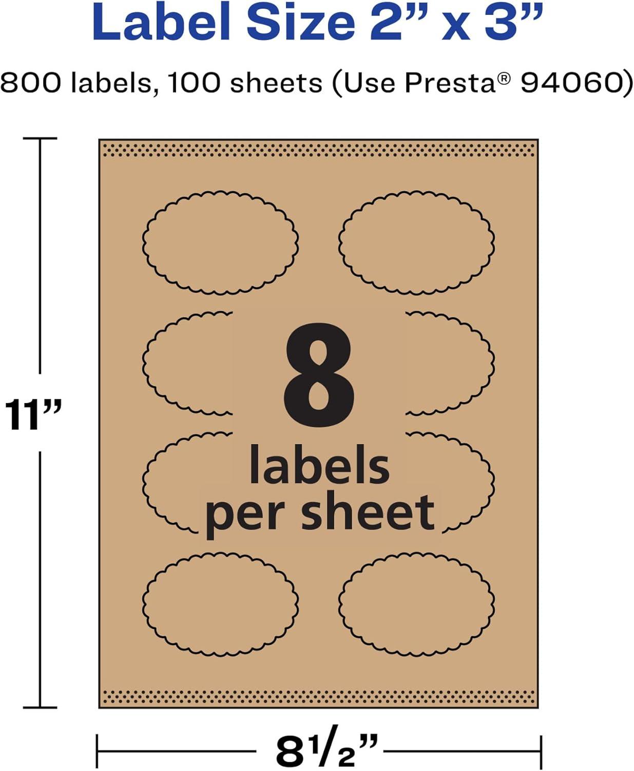 Avery Kraft Brown Oval Scalloped Labels, Sure Feed Technology, 2″ x 3″, 120 Kraft Brown Labels, Print-to-The-Edge, Laser/Inkjet Printable(800 labels)