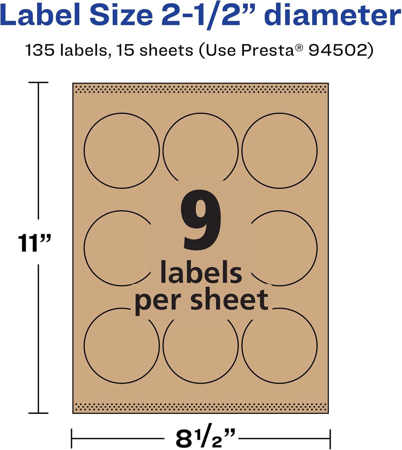Avery Kraft Brown Round Labels, Sure Feed Technology, 2.5″ Diameter, 225 Kraft Brown Labels, Print-to-The-Edge, Laser/Inkjet Printable(135 Labels)