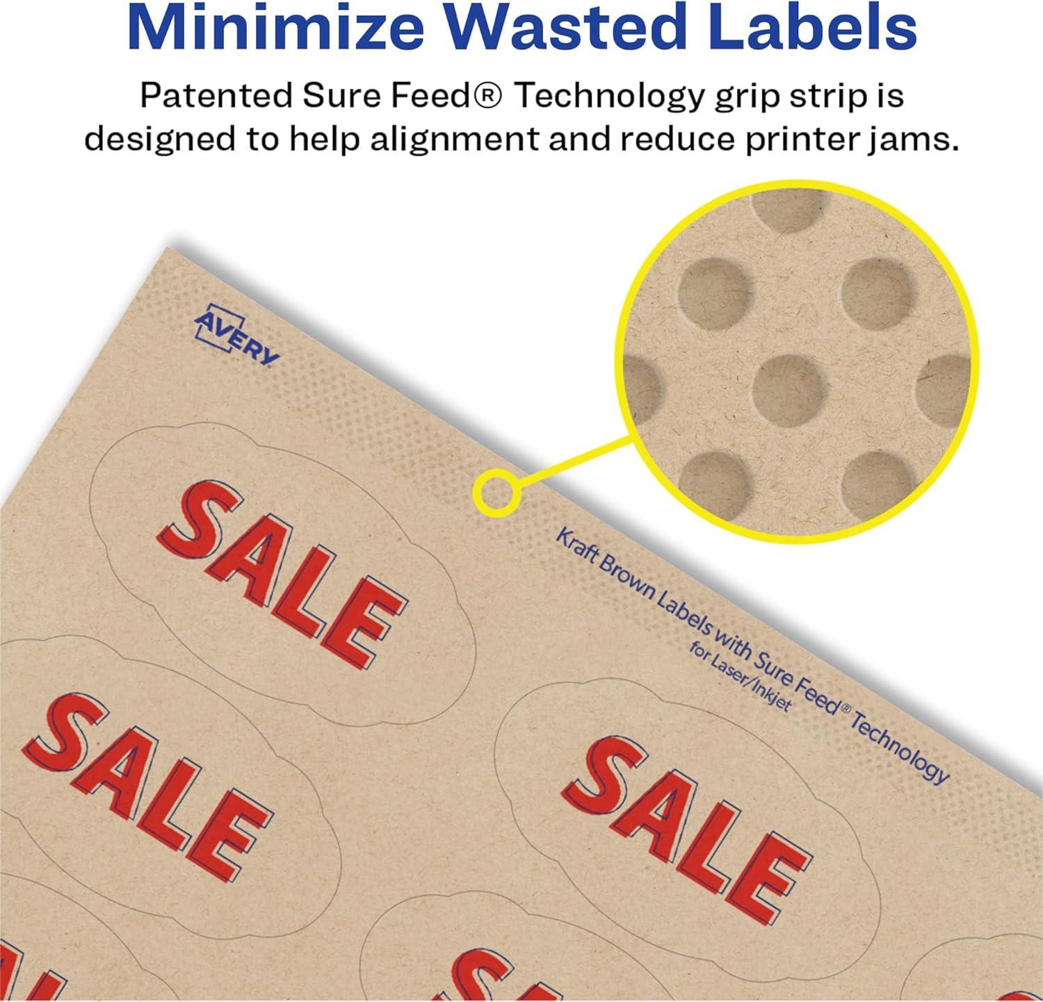 Avery Kraft Brown Scalloped Oval Labels with Sure Feed Technology, 1-1/8" x 2-1/4", Print to The Edge, Laser/Inkjet Printable Labels, 525 Total (22855)(One Size)