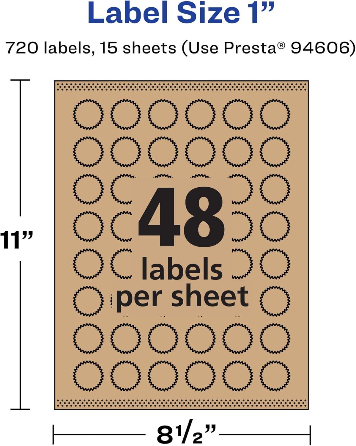 Avery Kraft Brown Starburst Labels, Sure Feed Technology, 1″, 1,200 Kraft Brown Labels, Print-to-The-Edge, Laser/Inkjet Printable(720 labels)