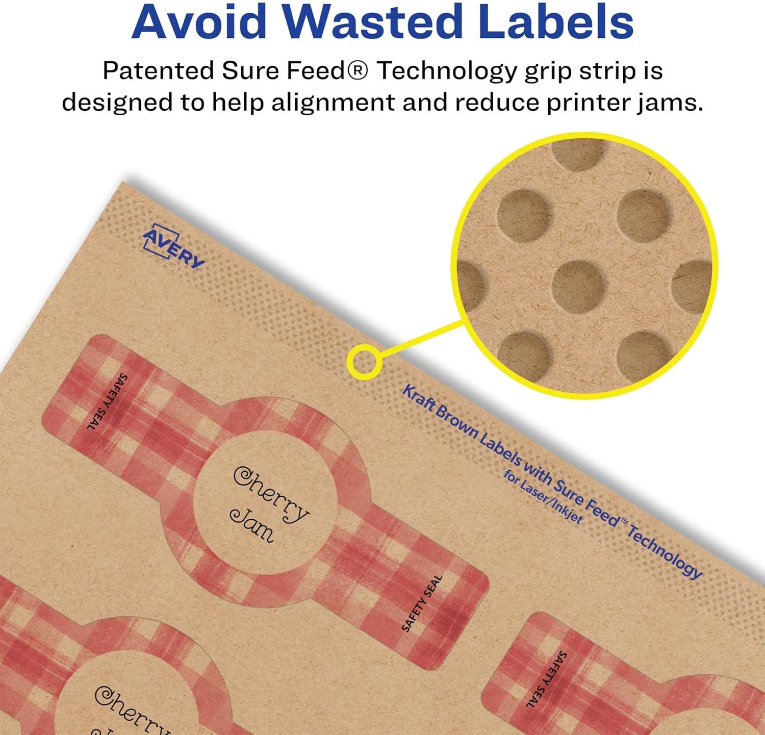 Avery labels with proprietary Sure Feed technology provide a more reliable feed through your printer, preventing misalignments and jams