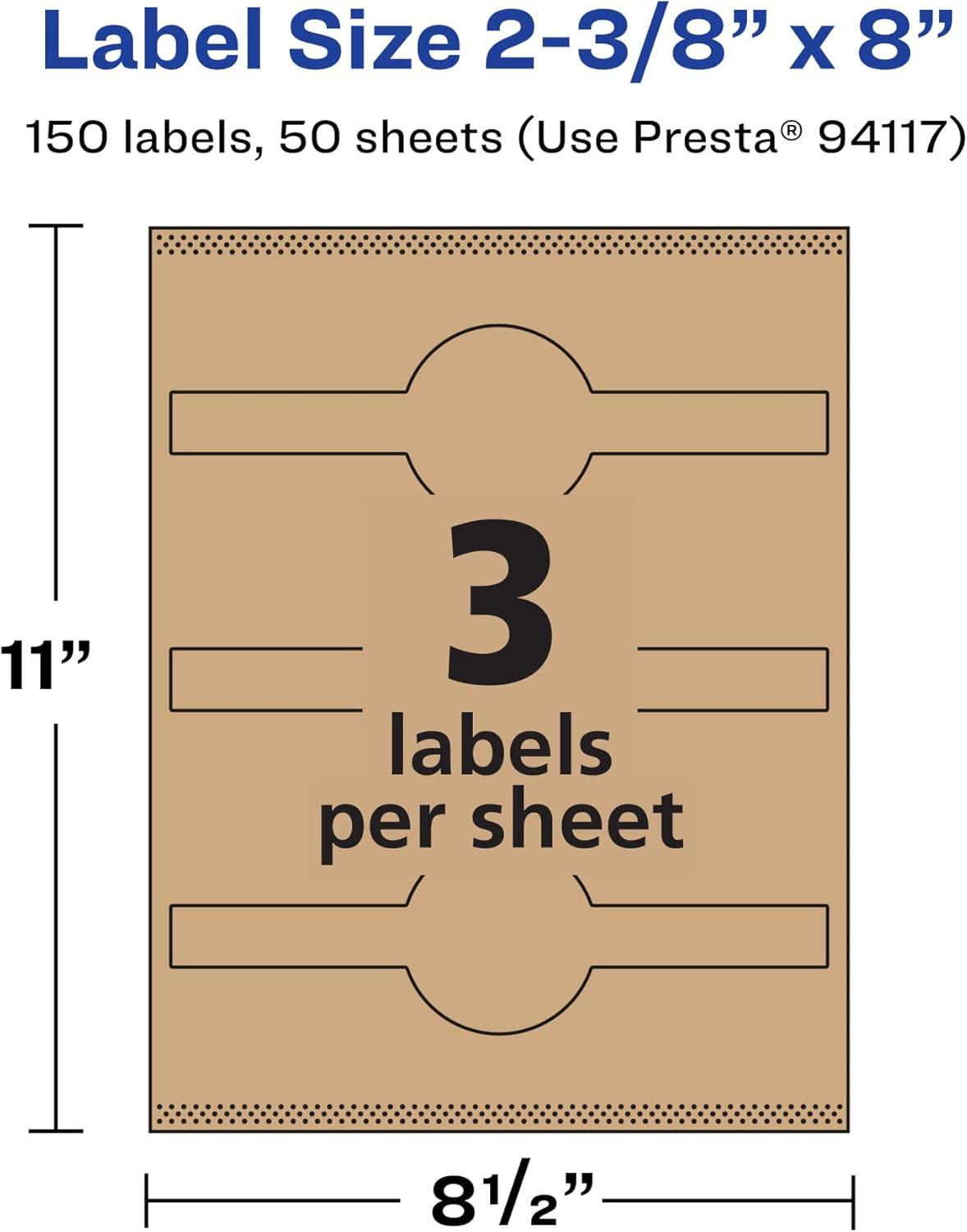 Avery Kraft Brown Wraparound Band Labels, Sure Feed Technology, 2-3/8" x 8", Cigar Band Labels, 300 Total, Laser/Inkjet Printable(150 labels)