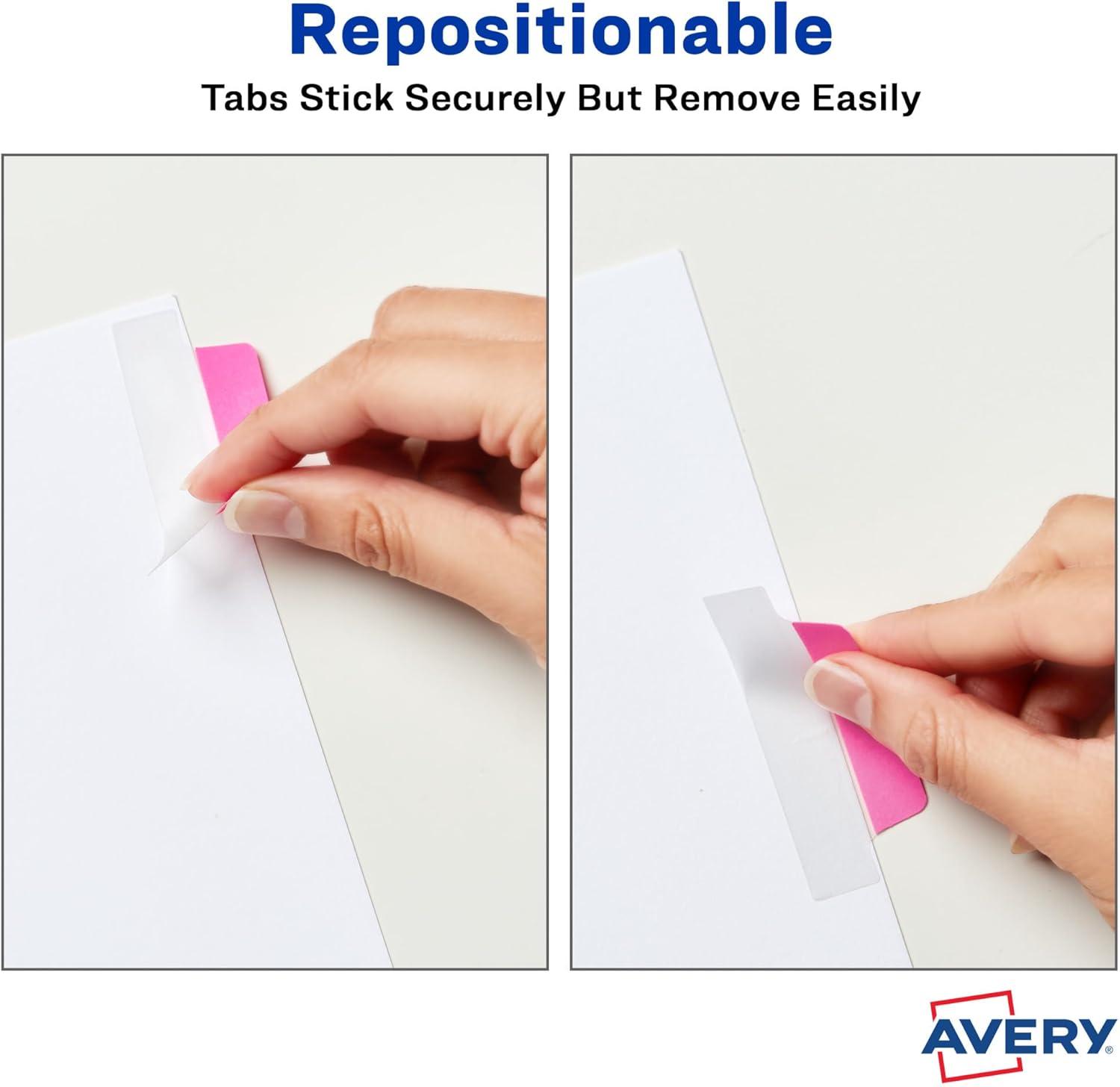 Repositionable sticky tab adhesive keeps tabs secure and also removes cleanly to avoid residue and damage