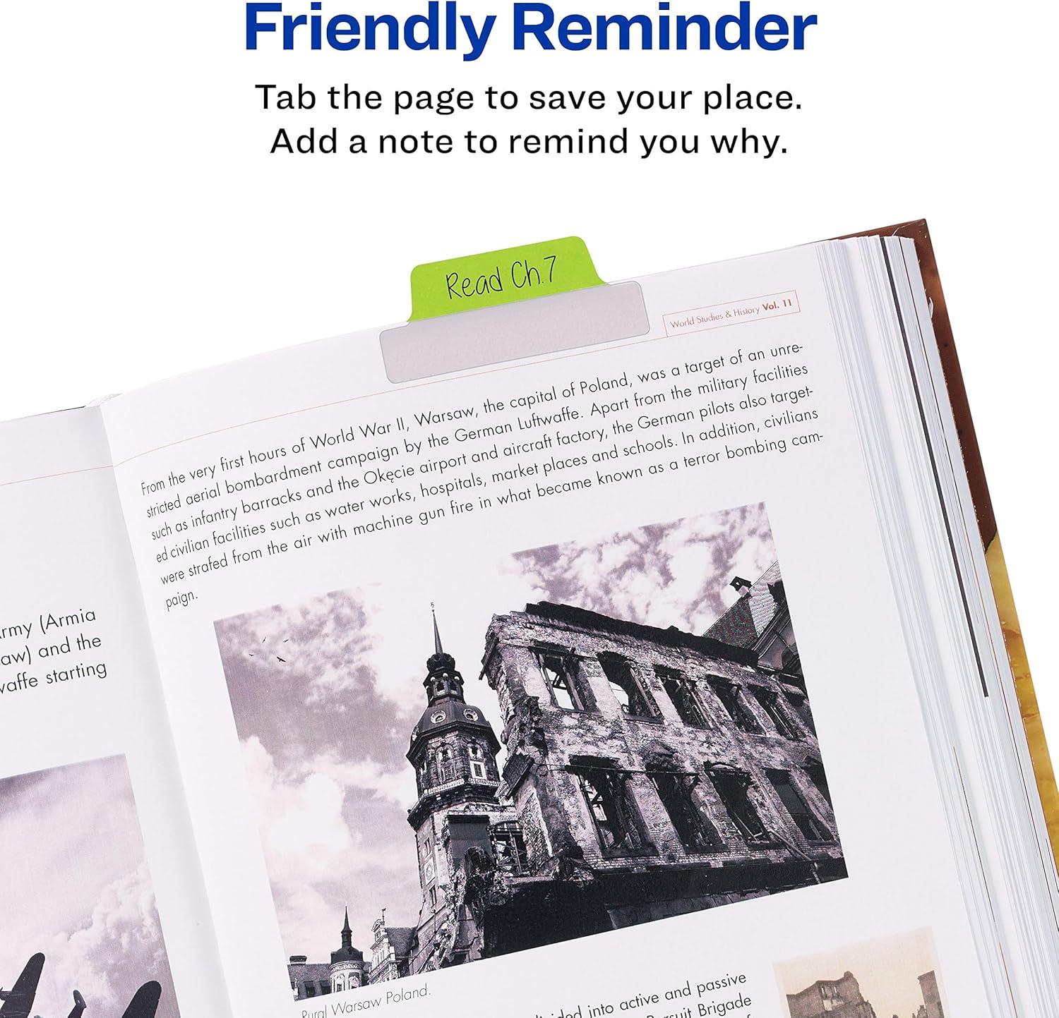 Repositionable sticky tab adhesive keeps tabs secure and also removes cleanly to avoid residue and damage