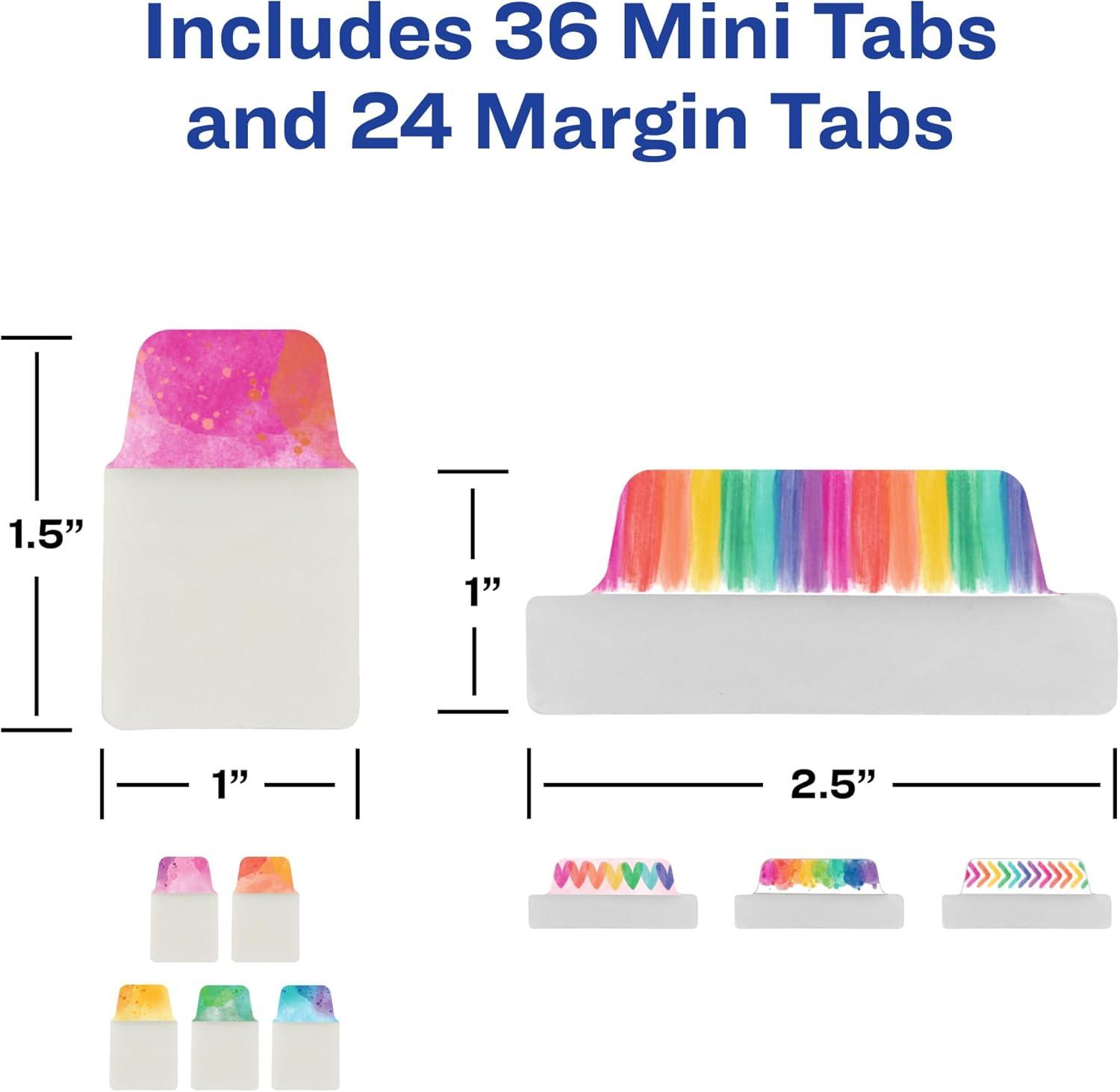 Avery Margin Ultra Tabs, 2.5" x 1", Pastel Sparkle Shimmer Designs, 16 Repositionable Page Tabs (74150)(Watercolor/Watercolor Sketch)