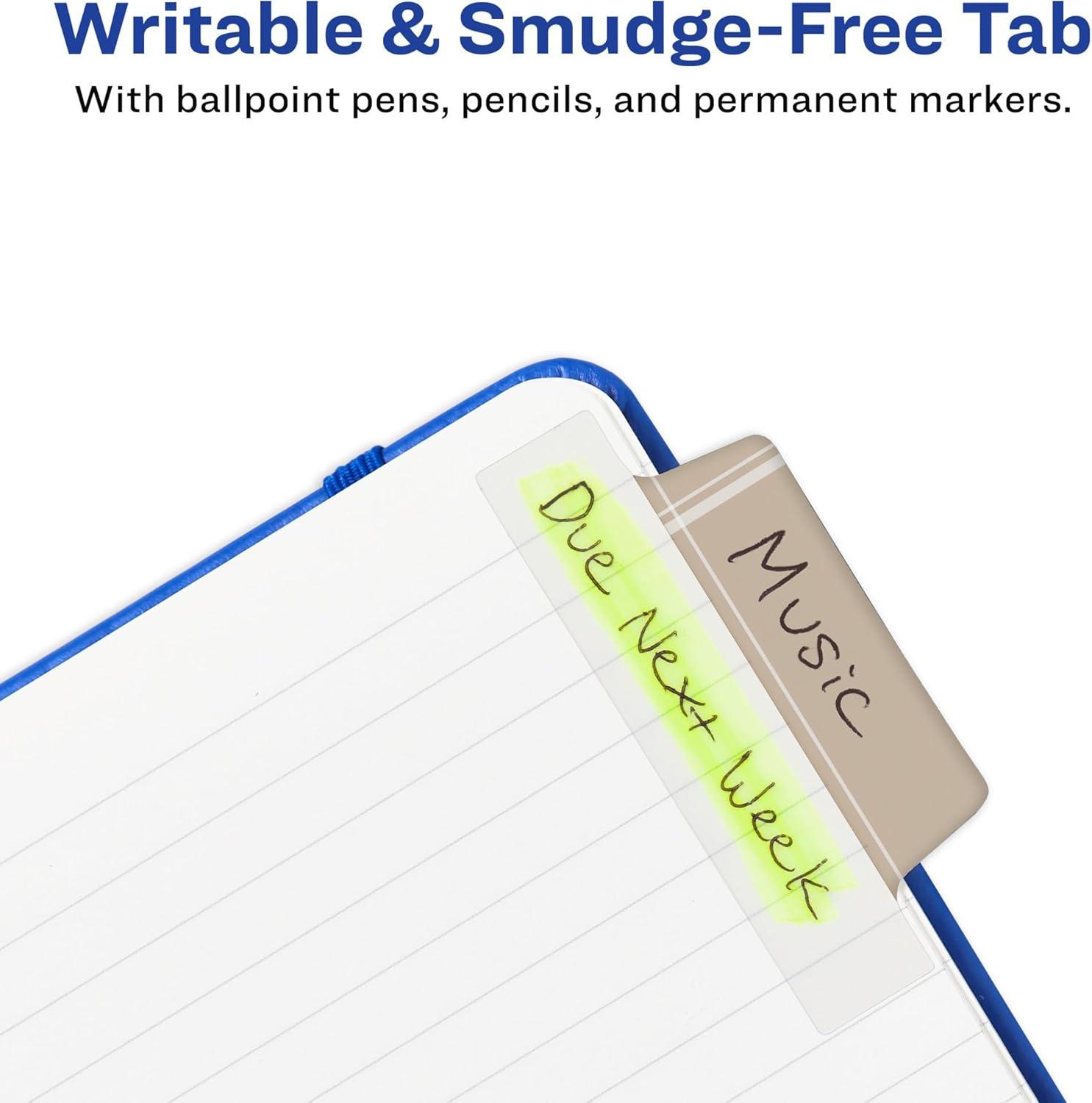 Tab and transparent, clear body resists smudging and is handwrite-compatible with most pens, pencils, permanent markers and more