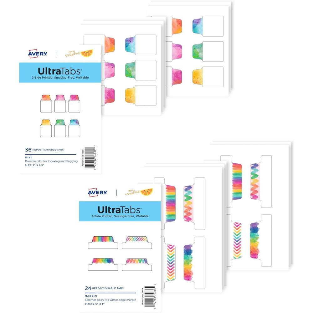 Avery Margin Ultra Tabs, 24 Repositionable Sticky Tabs, 2.5″ x 1″, 2-Side Writable Page Markers in Assorted Pastel Colors, 1 Pack (74769)(Assorted Colors)