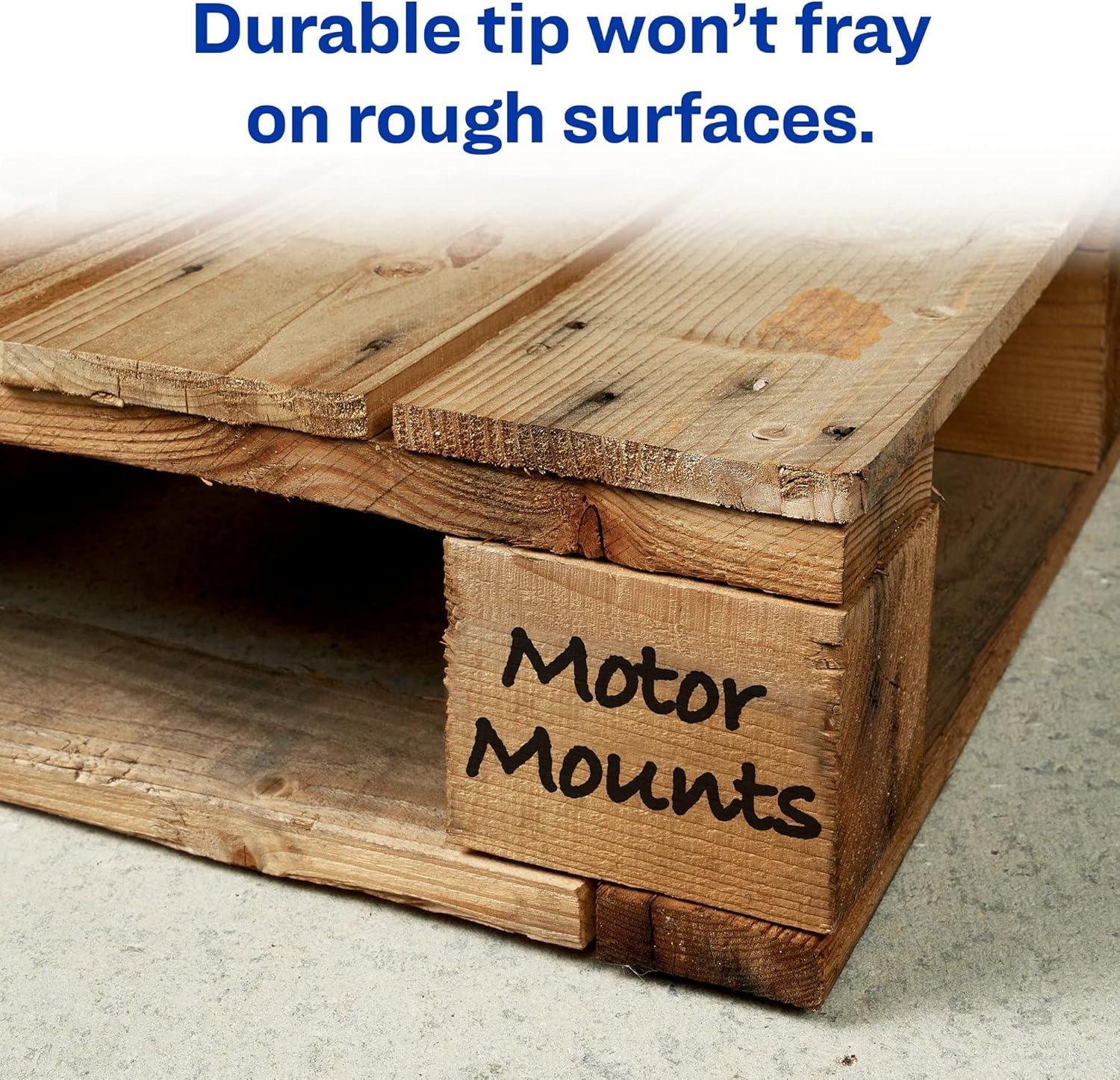 The largest Avery Marks A Lot marker available, this jumbo marker is great for those situations when you need to be big, bold and brilliant. This chisel tip marker uses a 5/8″ tip that can be angled to create lines of various widths and does not fray over time. The versatile, permanent black marker ink dries quickly when used but won’t dry out if you forget the cap. Leave the cap off for up to half an hour and you will still be able to pick the marker back up and keep writing. The permanent ink is wear and water resistant and is perfect for any use. These markers work with multiple surfaces including paper, cardboard, metal, PVC, concrete, plastic and ceramic. Write on sports equipment, make signs for yard sales, mark boxes and more. Marks A Lot chisel tip markers are great everywhere from classrooms and offices to warehouses and manufacturing facilities. Avery Marks A Lot permanent markers are also low-odor and nontoxic so that they can be safe in classrooms as well as in laboratories. The ink is ACMI certified as nontoxic and conforms to ASTM D4236.