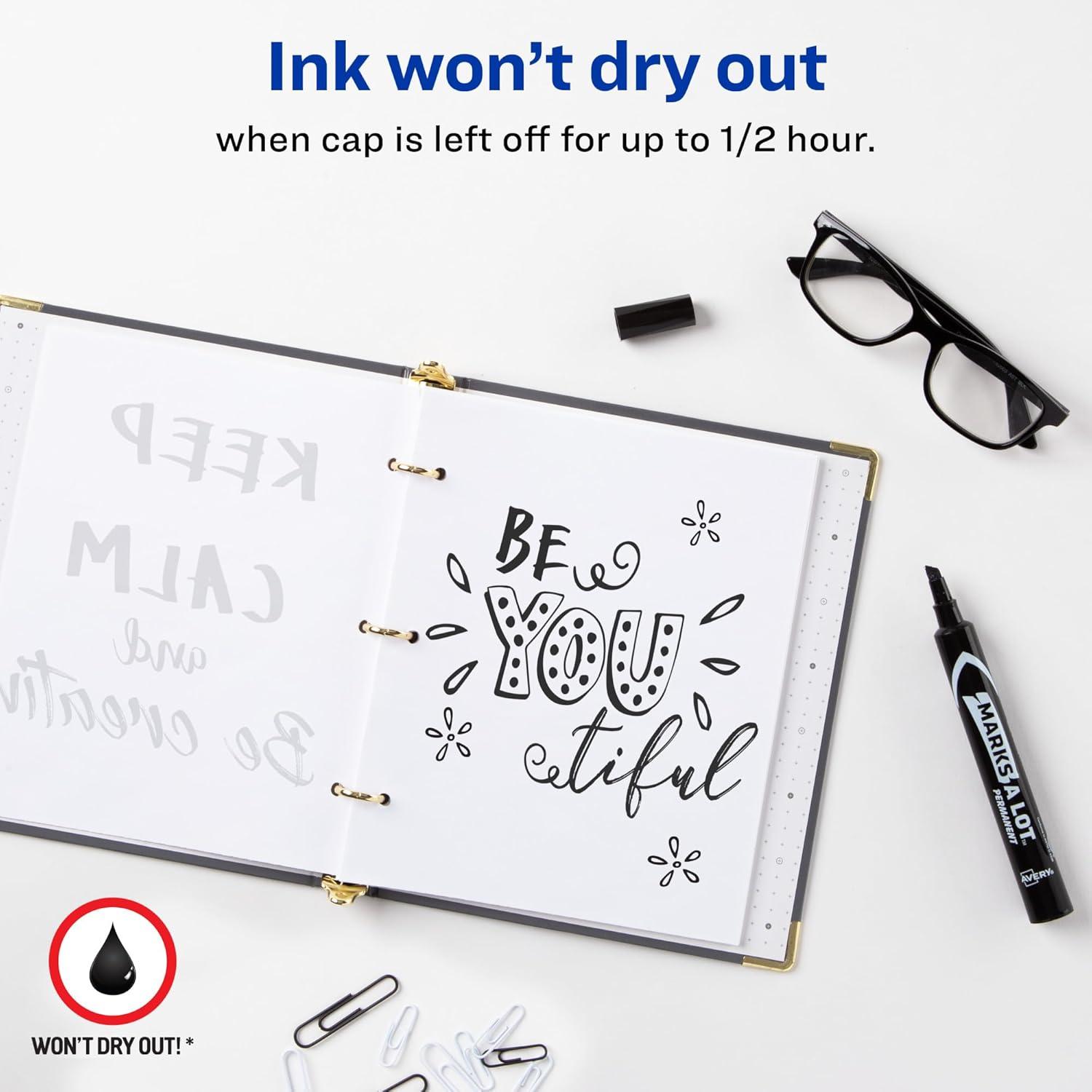 Avery Marks A Lot Jumbo Chisel Tip Marker, Desk-Style Size, Water and Wear Resistant, 12 Black Markers (24148)