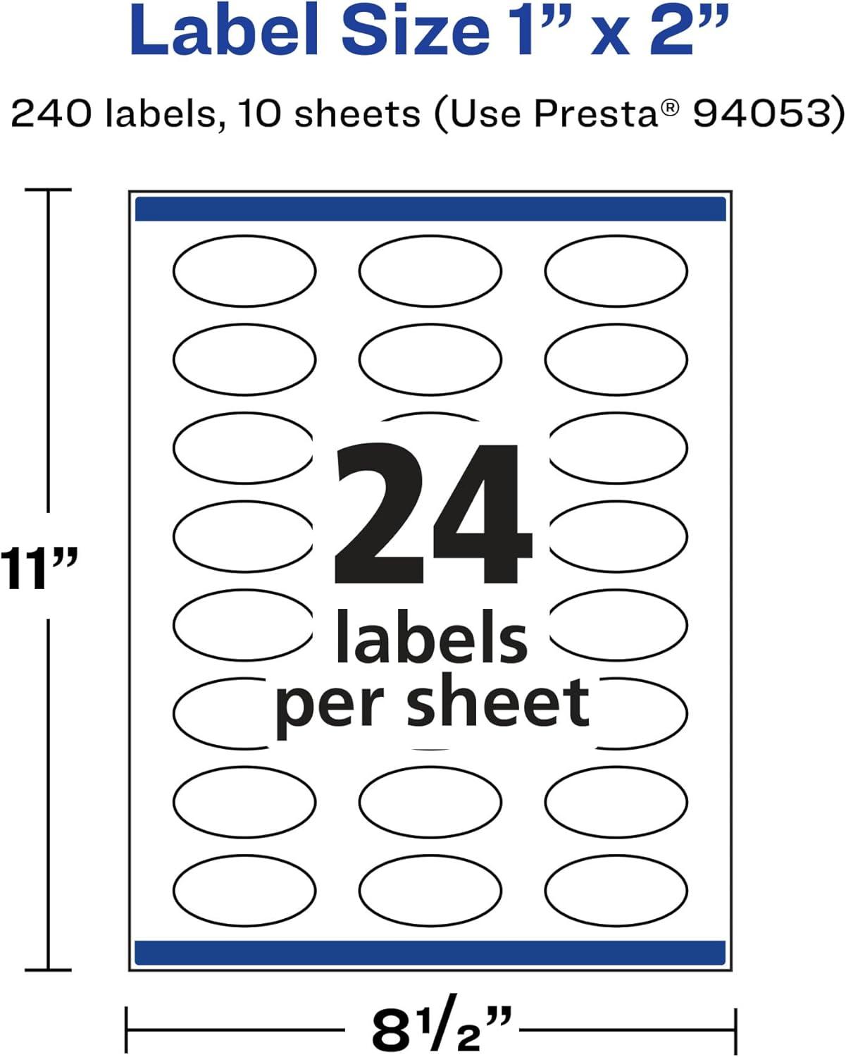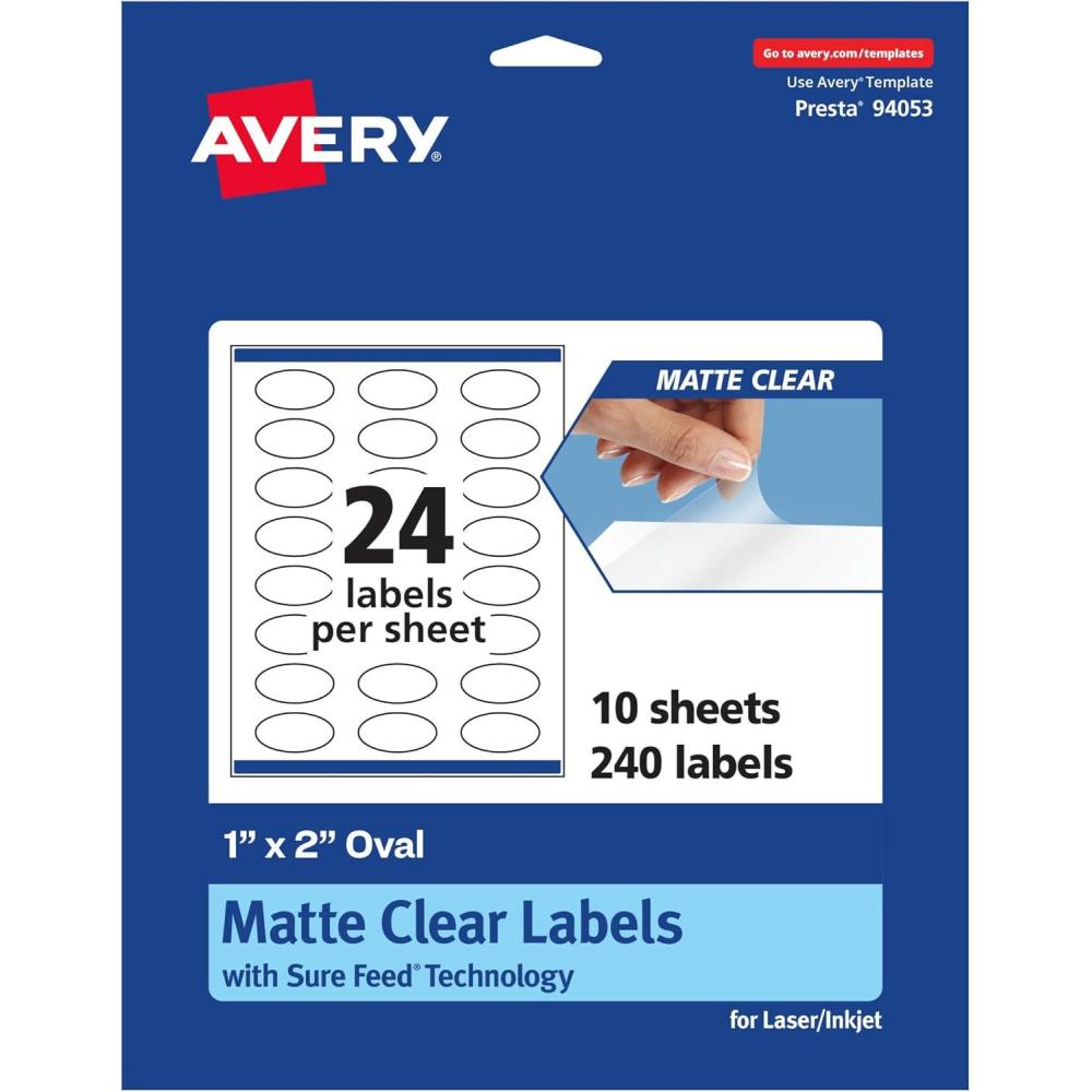 Avery Matte Clear Oval Labels, Sure Feed Technology, 1″ x 2″, 240 Matte Clear Labels, Print-to-The-Edge, Laser/Inkjet Printable(240 labels)