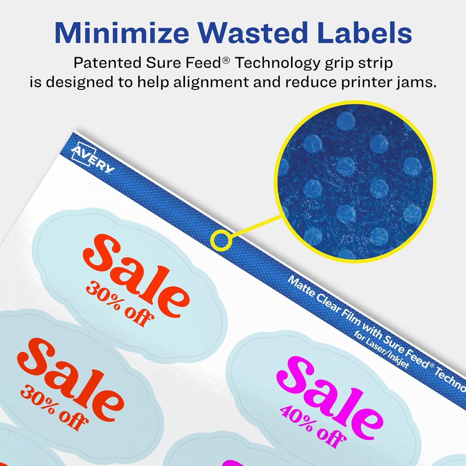Avery Matte Clear Oval Scalloped Labels, Sure Feed Technology, 1-1/8″ x 2-1/4″, 210 Matte Clear Labels, Print-to-The-Edge, Laser/Inkjet Printable(525 labels)