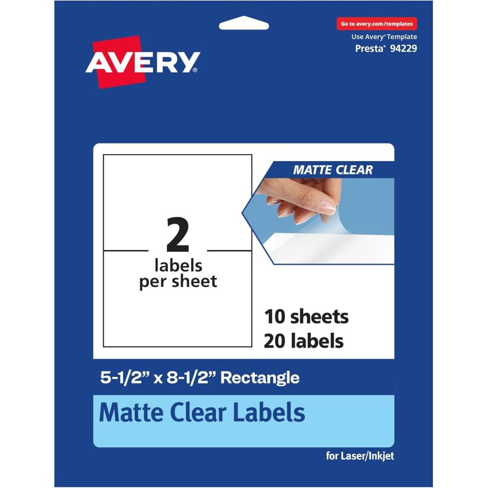 Avery Matte Clear Rectangle Labels, 5.5″ x 8.5″, 50 Matte Clear Labels, Laser/Inkjet Printable(20 labels)