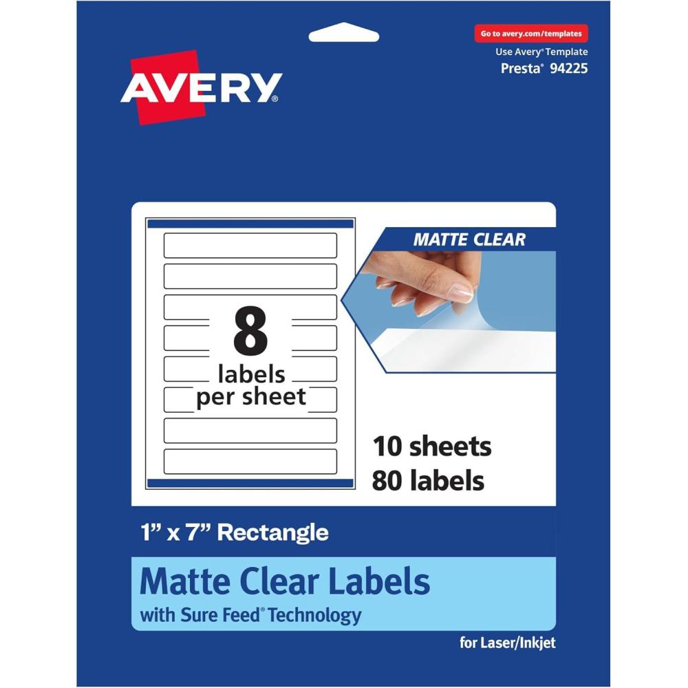 Avery Matte Clear Rectangle Labels, Sure Feed Technology, 1" x 7", 80 Matte Clear Labels, Print-to-The-Edge, Laser/Inkjet Printable(80 labels)