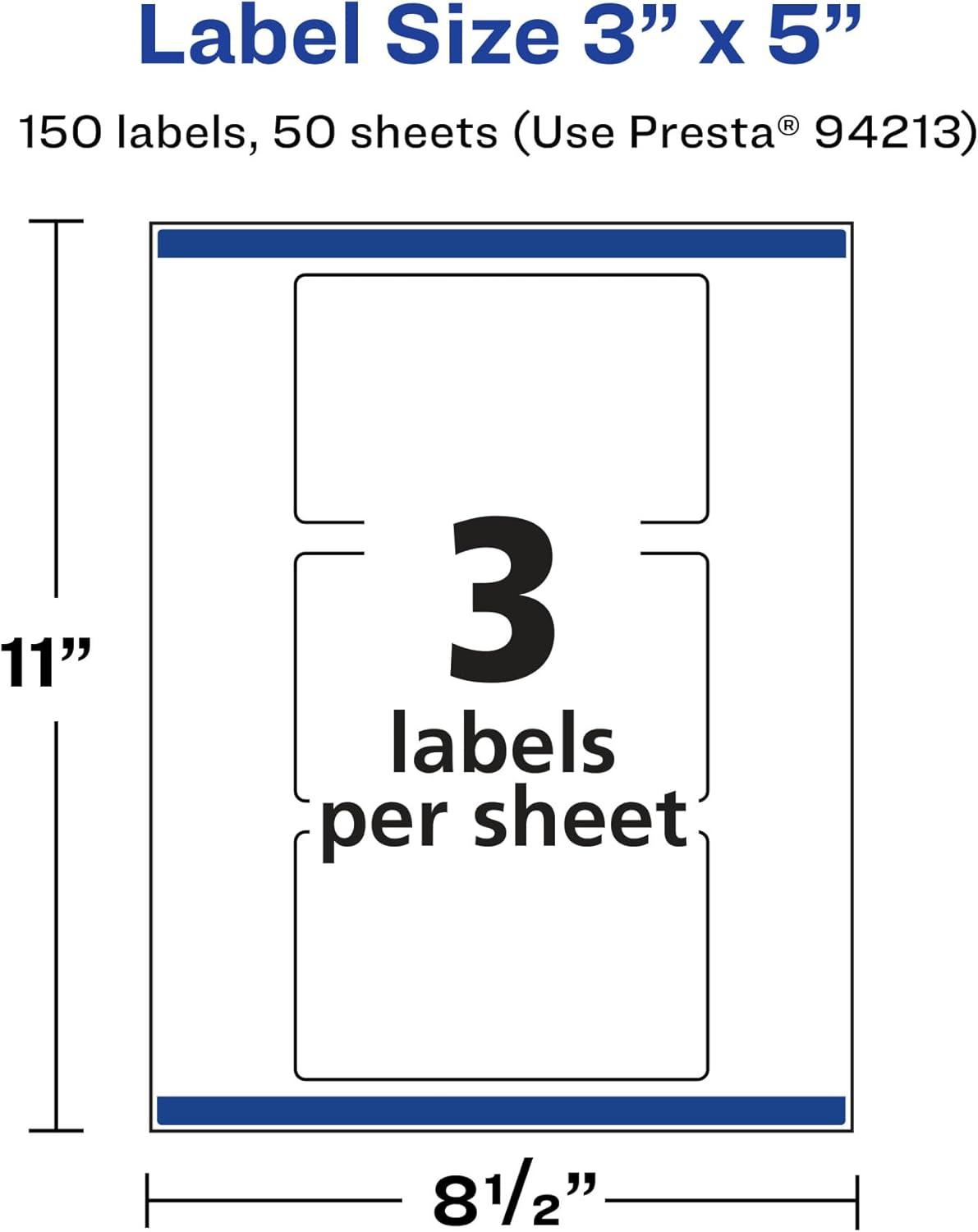 Avery Matte Clear Rectangle Labels, Sure Feed Technology, 3″ x 5″, 30 Matte Clear Labels, Print-to-The-Edge, Laser/Inkjet Printable(150 labels)