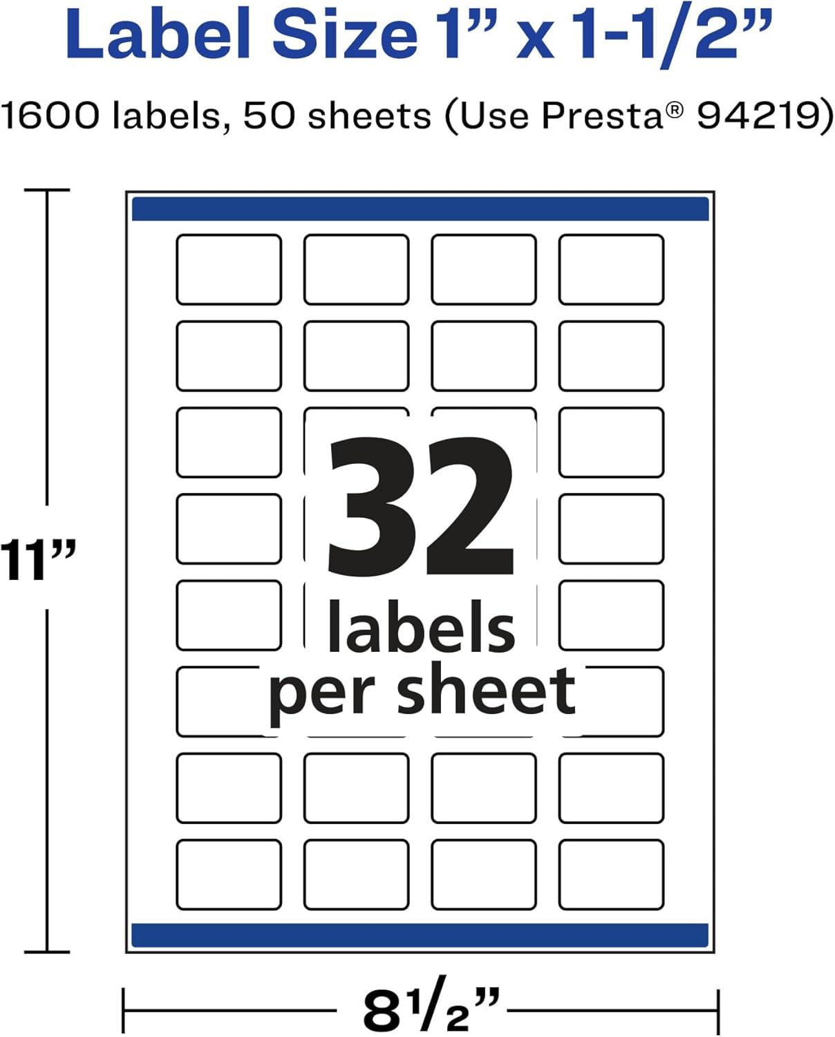 Create frosted clear lip balm labels, cosmetic labels, pricing labels, product labels, wedding and party favor labels, ingredient labels, soap labels, and more with Avery 1″ x 1-1/2″ Matte Clear Rectangle Labels. The soft, translucent material of Avery Clear Labels is perfect for creating clear labels that blend seamlessly into lighter-colored objects and surfaces. The slightly frosted appearance also helps provide contrast to make sure your print stays legible. Avery rectangle labels are carefully constructed with patented features to provide the best results. Sure Feed technology reduces jams and smudges by creating a more reliable feed through your printer. The print-to-the-edge layout lets you print beautiful full-bleed designs that fill each blank sticker to the edge. The patented Easy Peel label design makes these labels easy to peel and quick to apply. Just bend the label sheet, peel off your labels and fold the sheet back flat. The strong permanent label adhesive makes sure that your labels stick and stay to a variety of surfaces without peeling, curling or falling off. Easily customize labels with your own designs, art, symbols, and messaging by using the label templates and designs on the Avery website.