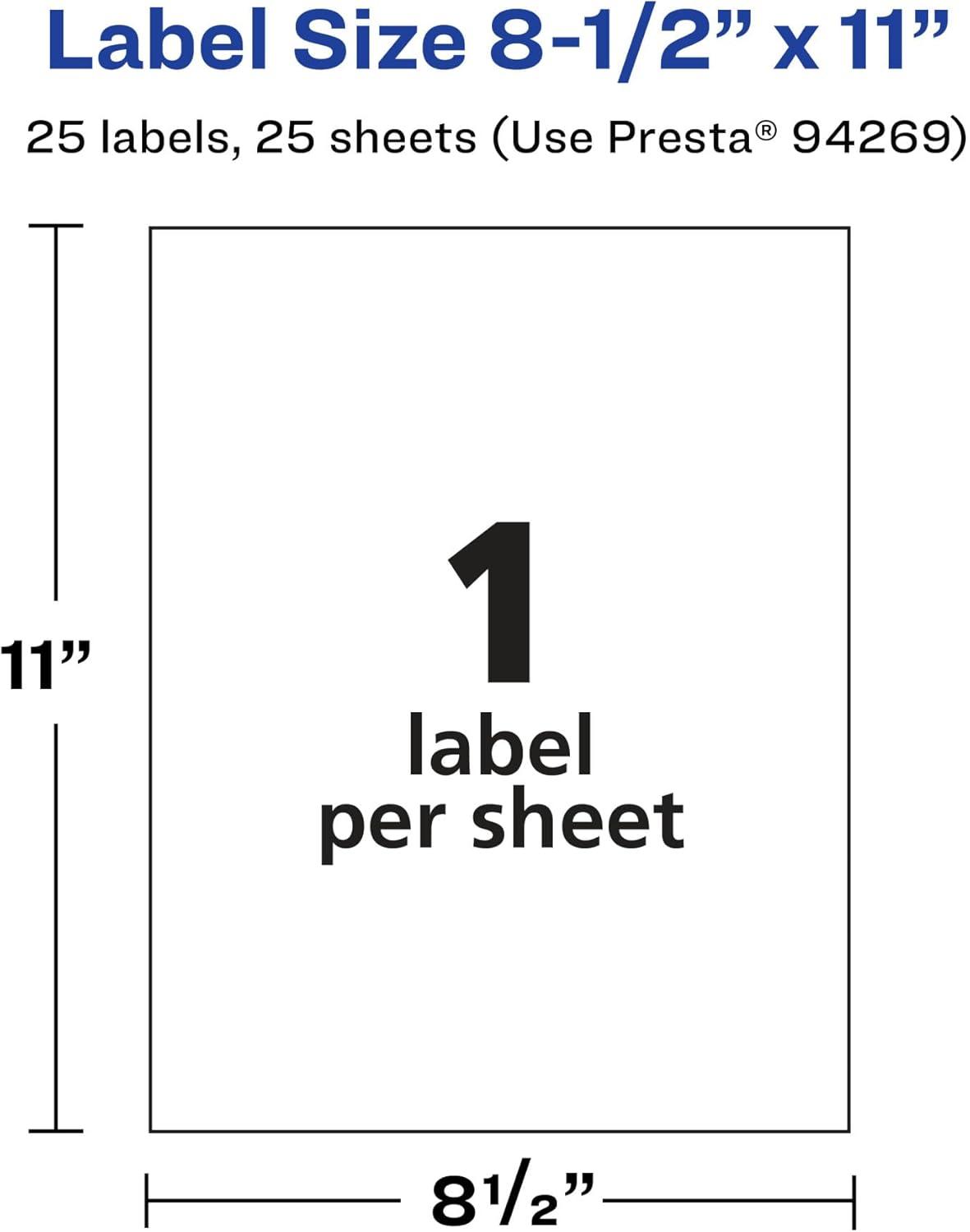 Avery Matte Clear Rectangle Sticker Sheets, 8.5″ x 11″, 25 Matte Clear Labels, Laser/Inkjet Printable Labels(25 labels)