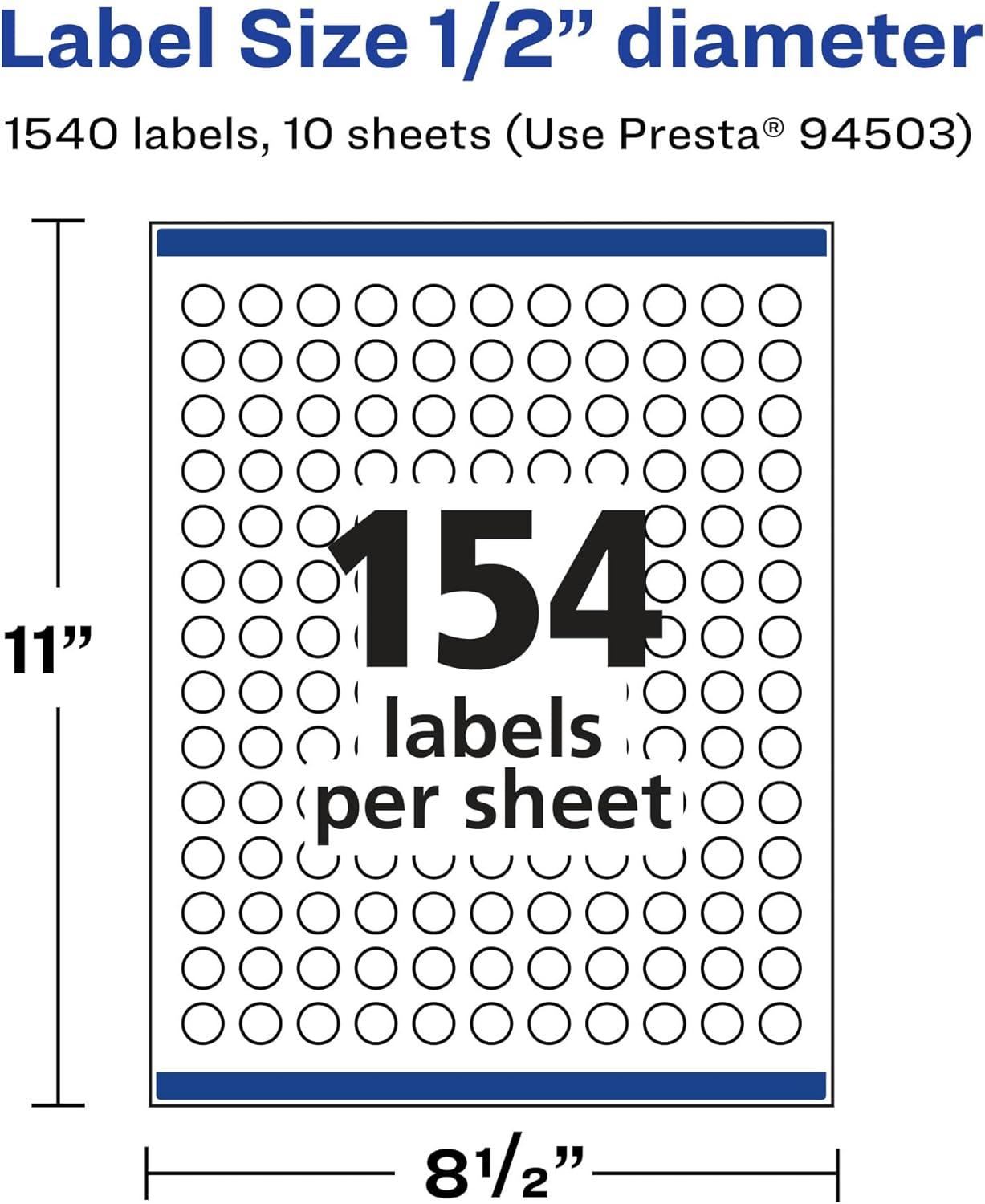 Avery Matte Clear Round Labels, Sure Feed Technology, 0.5″ Diameter, 1,540 Matte Clear Labels, Print-to-The-Edge, Laser/Inkjet Printable(3 850 labels)