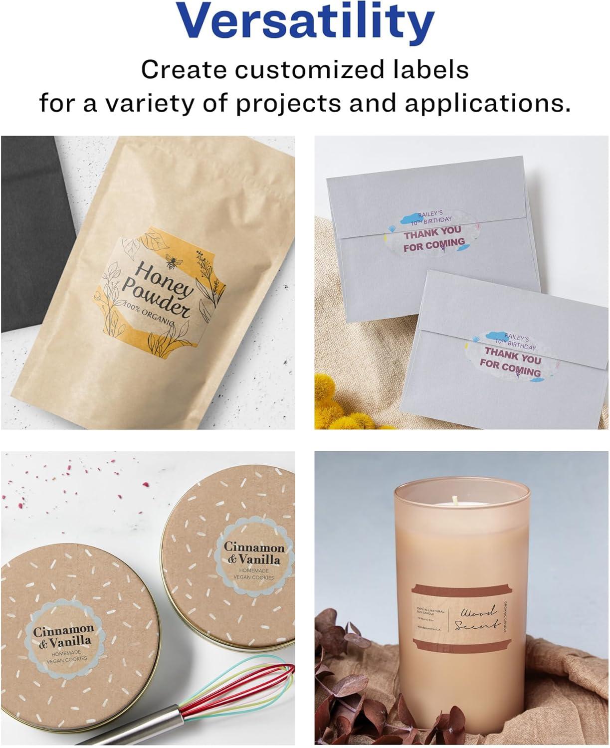 Avery Matte Clear Round Scalloped Labels, Sure Feed Technology, 2.5″ Diameter, 90 Matte Clear Labels, Print-to-The-Edge, Laser/Inkjet Printable(450 labels)