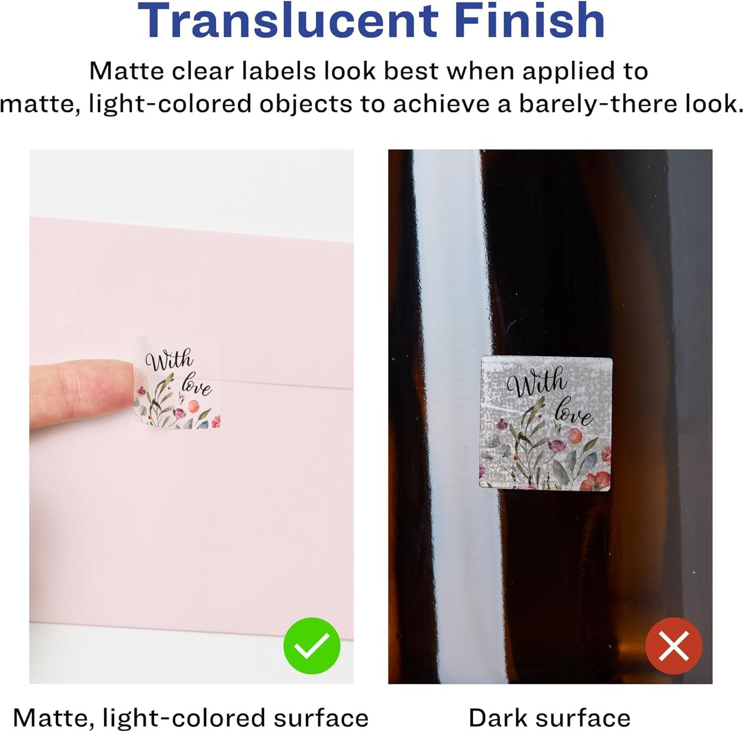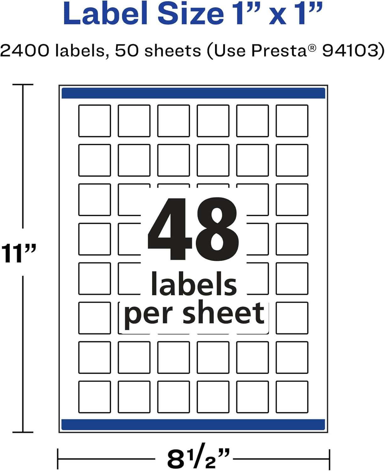 Avery Matte Clear Square Labels, Sure Feed Technology, 1″ x 1″, 480 Matte Clear Labels, Print-to-The-Edge, Laser/Inkjet Printable(1 200 labels)