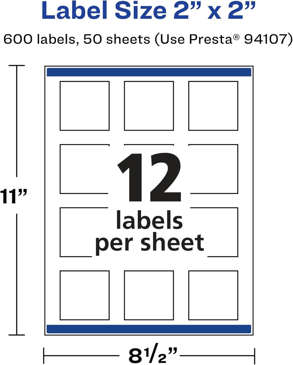 Avery Matte Clear Square Labels, Sure Feed Technology, 2″ x 2″, 120 Matte Clear Labels, Print-to-The-Edge, Laser/Inkjet Printable(600 labels)