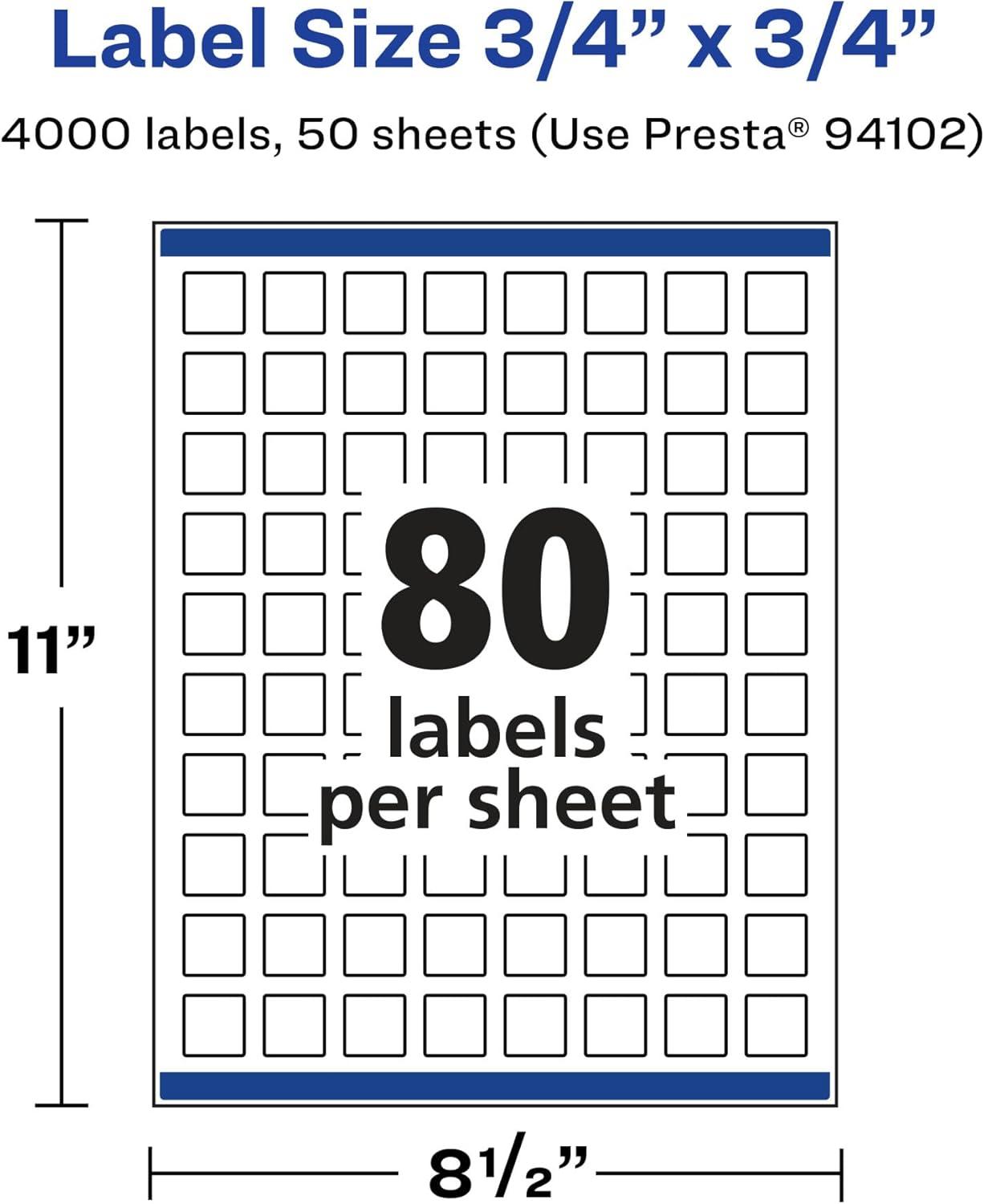 Avery Matte Clear Square Labels, Sure Feed Technology, 3/4″ x 3/4″, 800 Matte Clear Labels, Print-to-The-Edge, Laser/Inkjet Printable(4 000 labels)