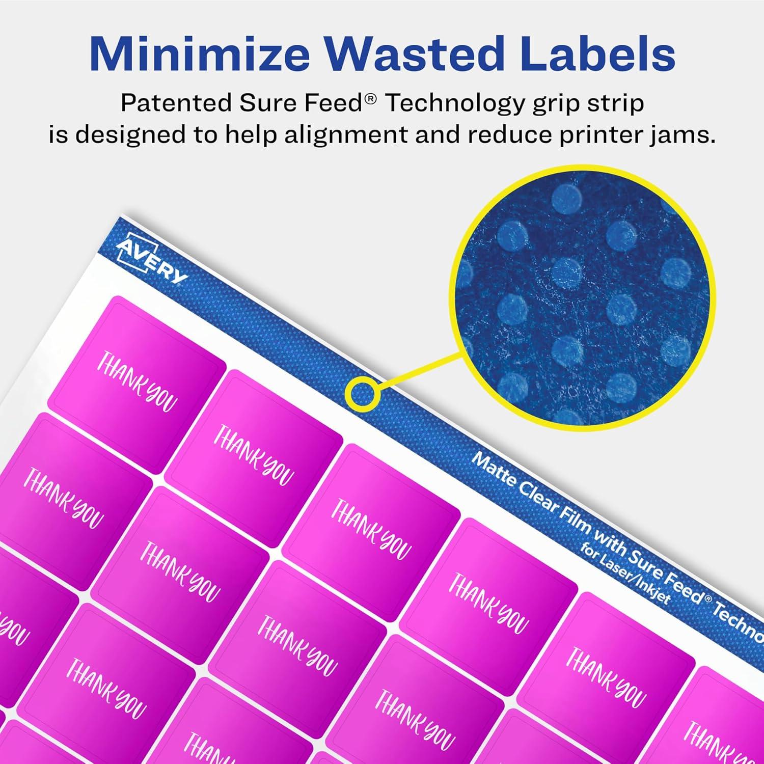Avery Matte Clear Square Labels, Sure Feed Technology, 3/4" x 3/4", 800 Matte Clear Labels, Print-to-The-Edge, Laser/Inkjet Printable(4 000 labels)