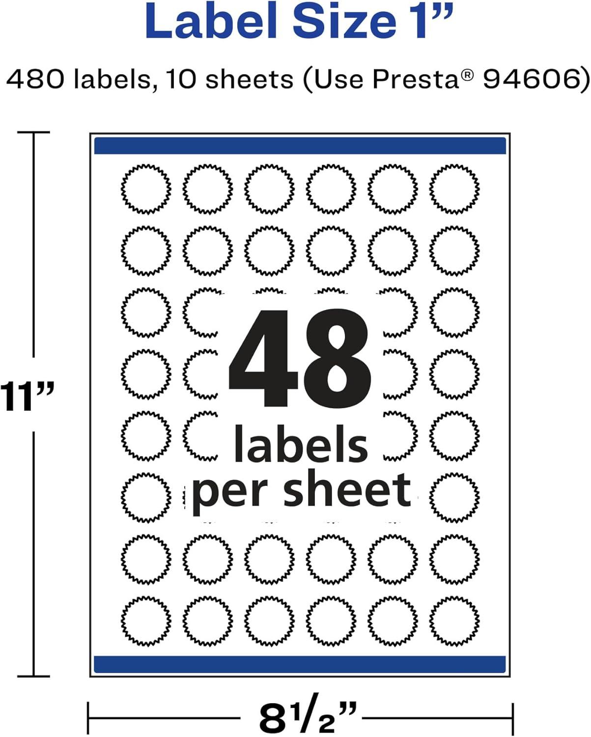 Avery Matte White Starburst Labels, Sure Feed Technology, 1.75″, 500 Matte White Printable Labels(1 000 Labels)