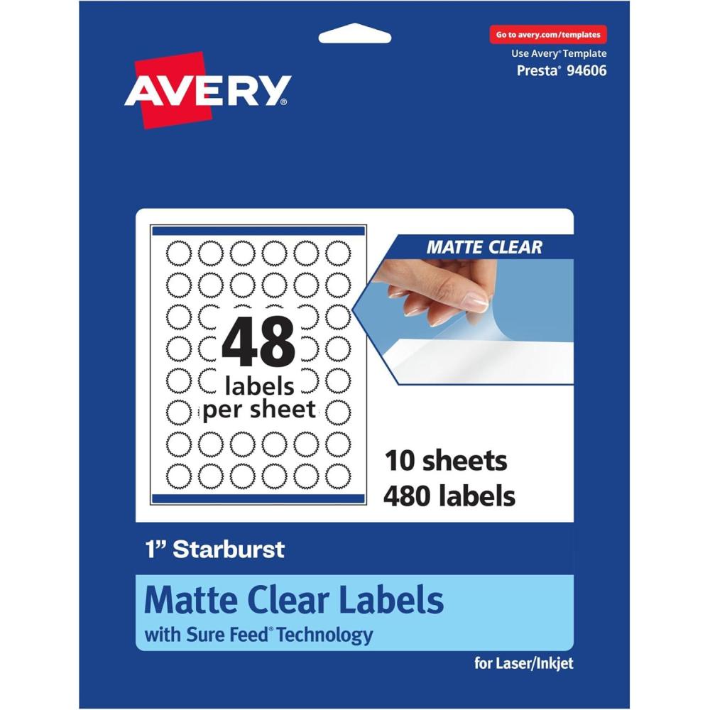 Avery Matte Clear Starburst Labels, Sure Feed Technology, 1", 1,200 Matte Clear Labels, Print-to-The-Edge, Laser/Inkjet Printable(480 labels)