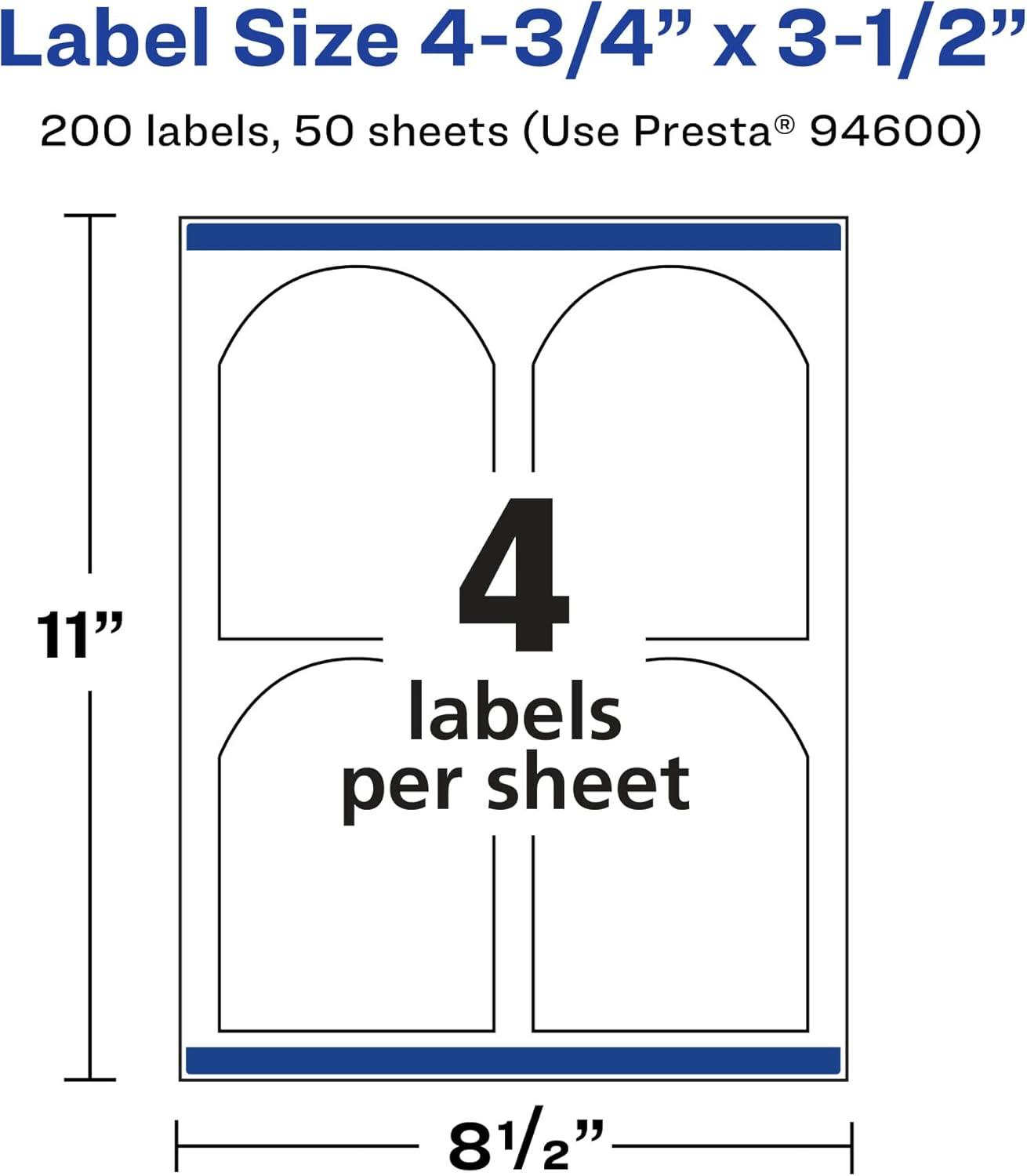 Avery Matte White Arched Labels, Sure Feed Technology, 4.75″ x 3.5″, 100 Matte White Printable Labels(200 Labels)