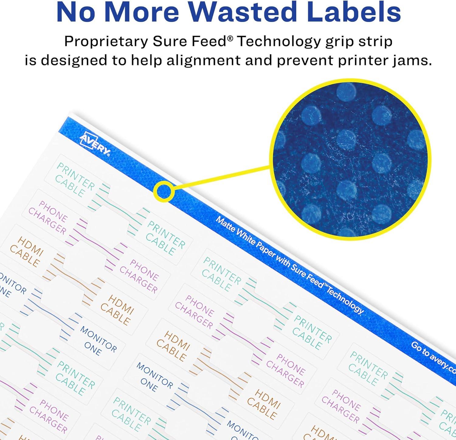 Avery labels with proprietary Sure Feed technology provide a more reliable feed through your printer, preventing misalignments and jams
