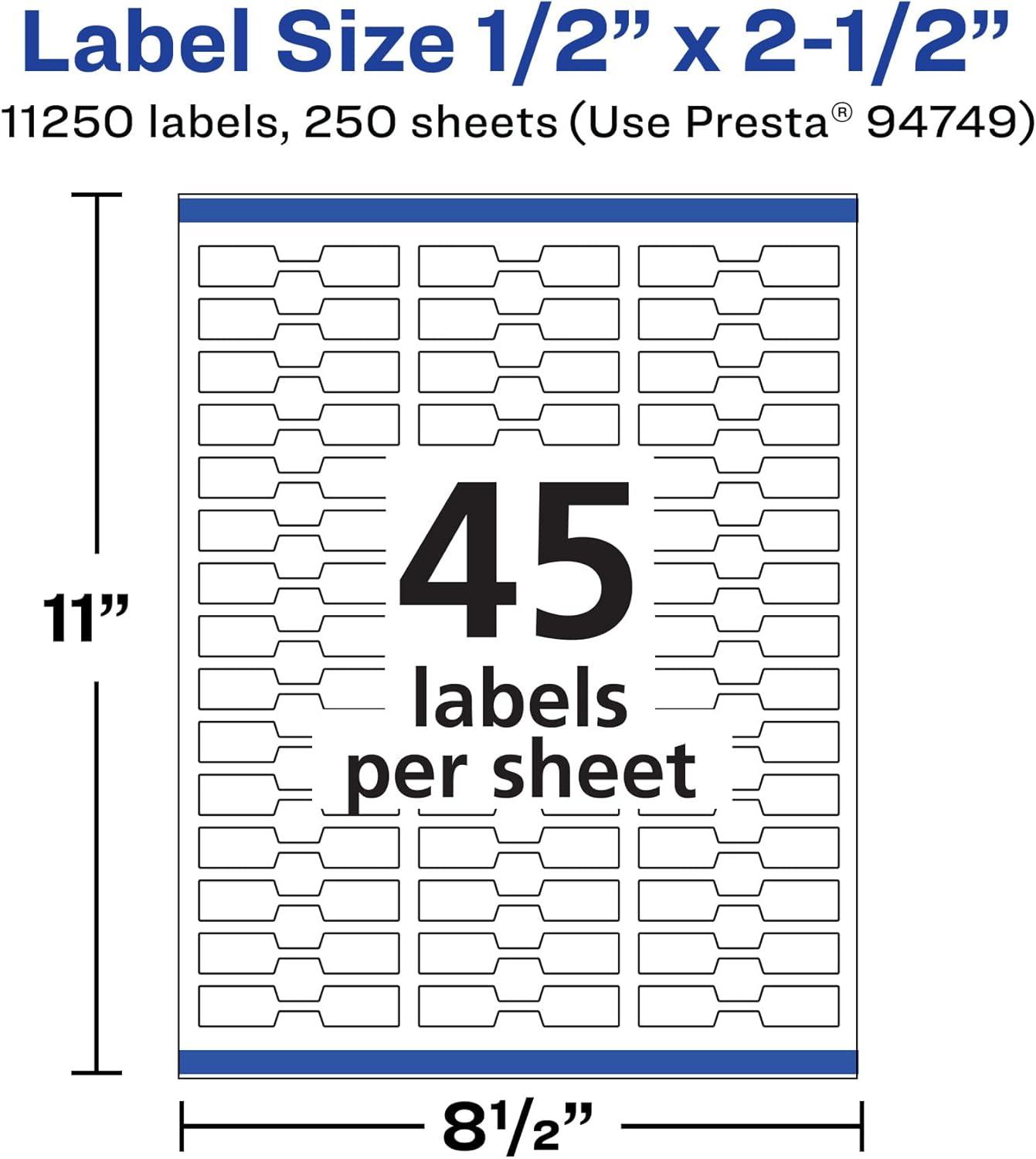 Avery Matte White Barbell Labels, Sure Feed Technology, 0.5″ x 2.5″, 1,125 White Labels, Permanent Adhesive, Laser/Inkjet Printable(11 250 labels)