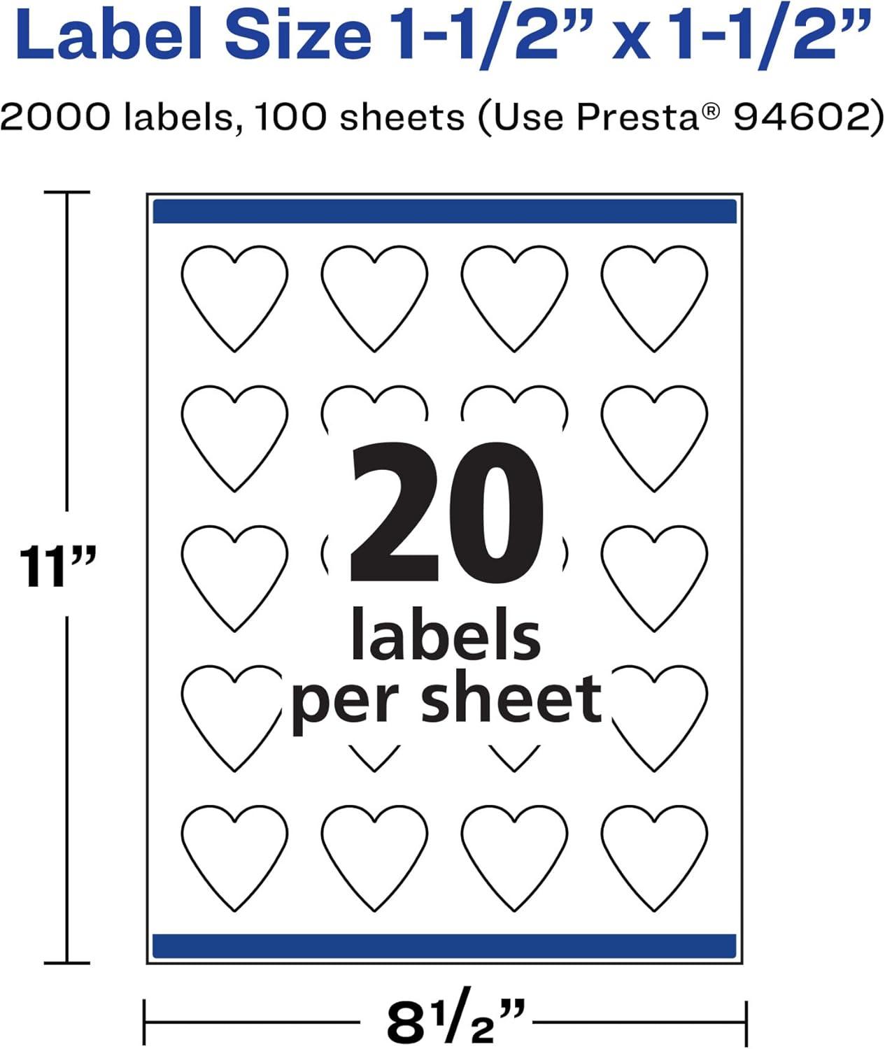Avery Matte White Heart Labels, Sure Feed Technology, 1.5″ x 1.5″, 500 Matte White Printable Labels(2 000 Labels)