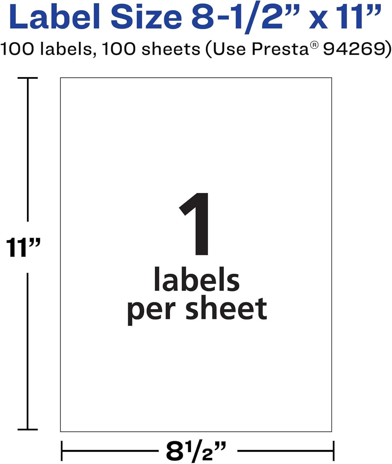 Avery Matte White Rectangle Labels, 8.5″ x 11″, 25 White Labels, Permanent Adhesive, Laser/Inkjet Printable(100 labels)
