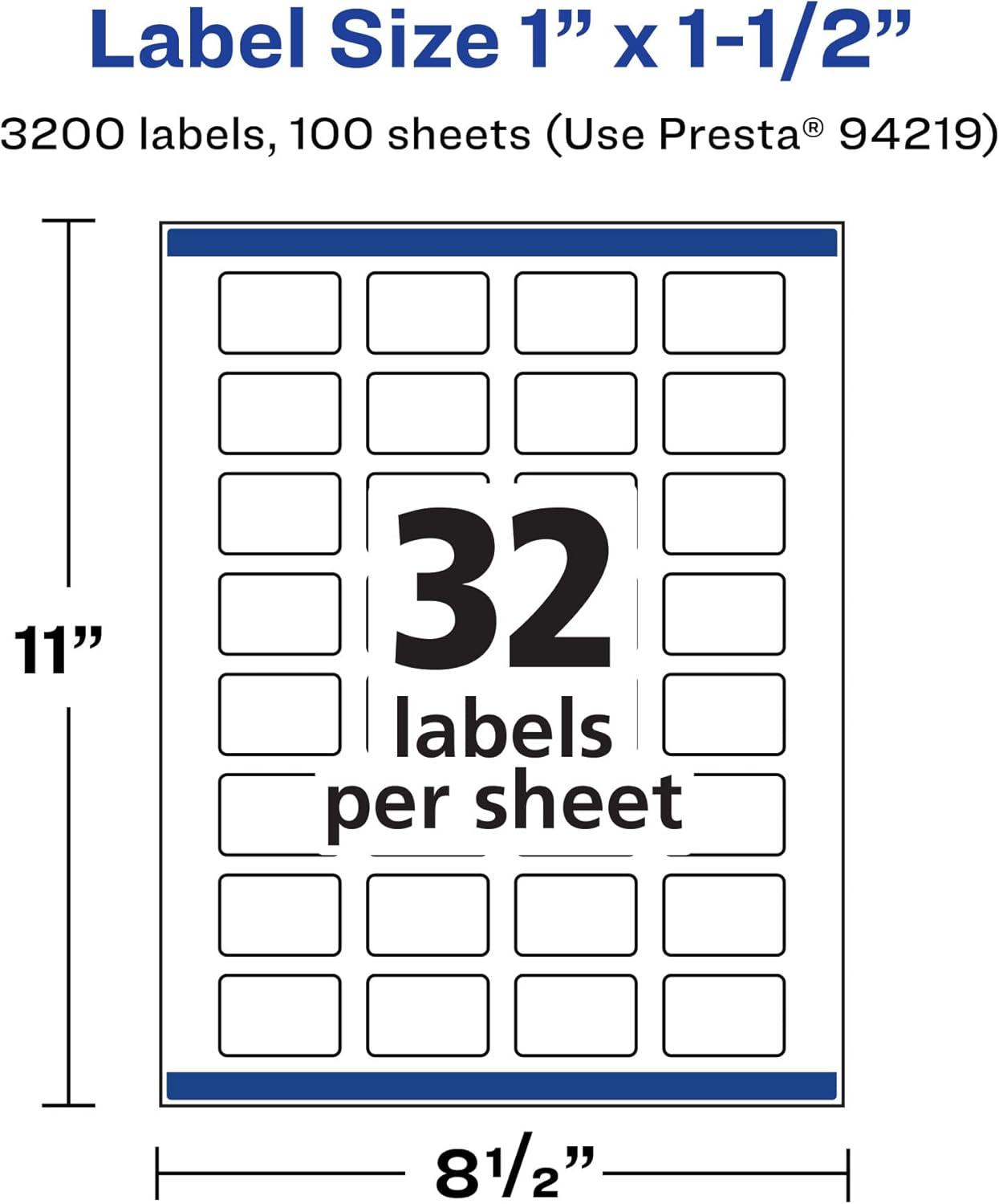 Avery Matte White Rectangle Labels, Sure Feed Technology, 1″ x 1.5″, 800 Matte White Printable Labels(1 600 Labels)