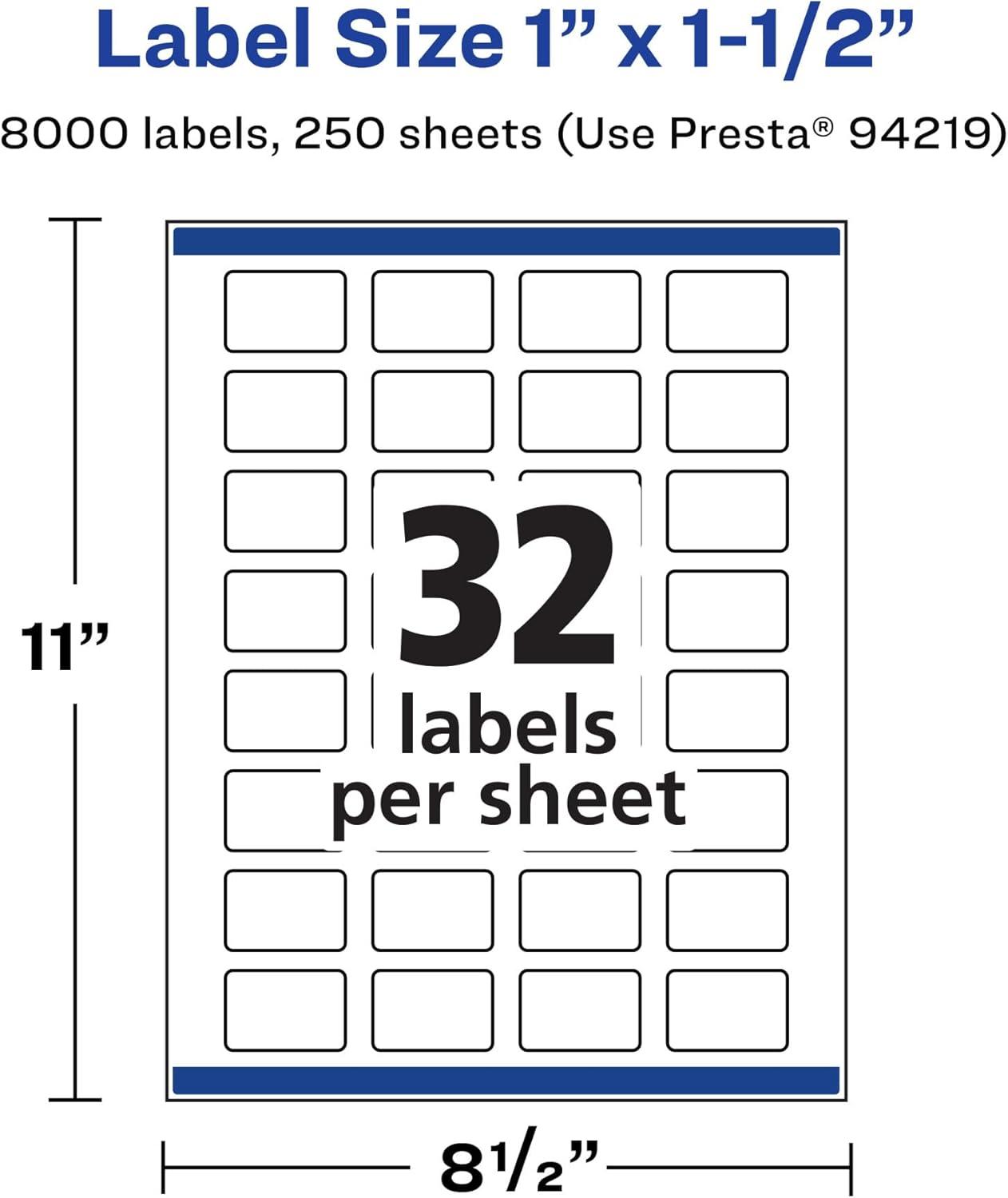 Avery Matte White Rectangle Labels, Sure Feed Technology, 1″ x 1.5″, 800 Matte White Printable Labels(8 000 Labels)