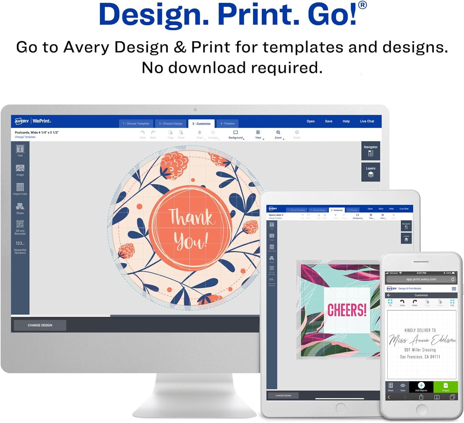 Avery white labels with proprietary Sure Feed technology provide a more reliable feed through your printer, preventing misalignments and jams