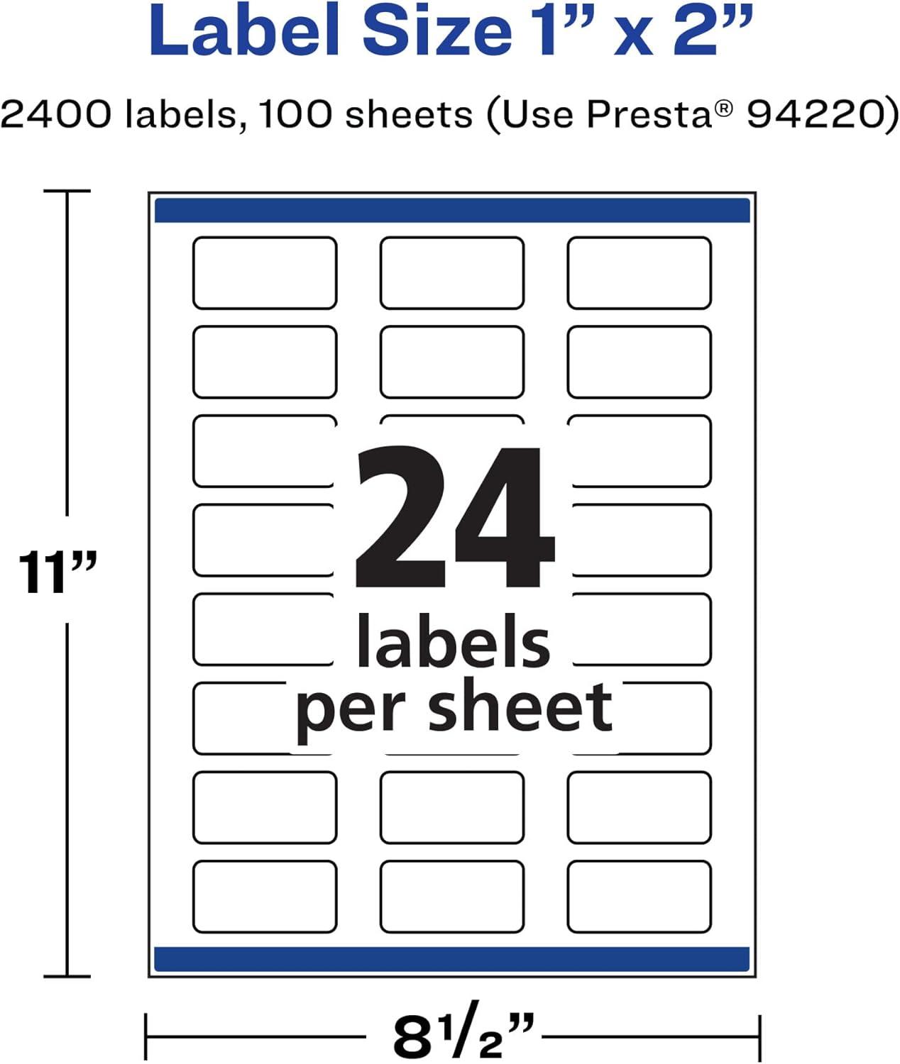 Matte white Avery labels are the perfect choice for any project. The smooth, matte white finish is a great fit whether you're designing product labels, shipping packages for work, making party favors or adding a creative touch to personal crafts or school projects. Each sheet of labels features Sure Feed technology which helps deliver a more reliable feed through your printer to prevent print misalignments and paper jams. The print-to-the-edge feature makes it easy to print beautiful designs that can reach the edges of the label without a border or outline. Quickly apply these labels with our patented Easy Peel label sheets with Pop-up Edge. Simply fold the sheet back to display the label edges for convenient and fast peeling. A strong permanent adhesive is used to ensure that these labels stick and stay to paper, cardboard, plastic, glass, metal and more without curling or falling off. The versatile label shape can adapt to almost any use, just create your design with our free software and print. Avery Design & Print makes it easy to create customized labels from your own home or business so that you can print professional designs with your laser or inkjet printer. Our free browser-based software includes predesigned templates as well as tools for editing text and images so that you can create ingredient labels, price tag labels, barcode labels, return address labels, lip gloss labels and more. Try it out today by searching for Avery template Presta 94220 on the Avery site.