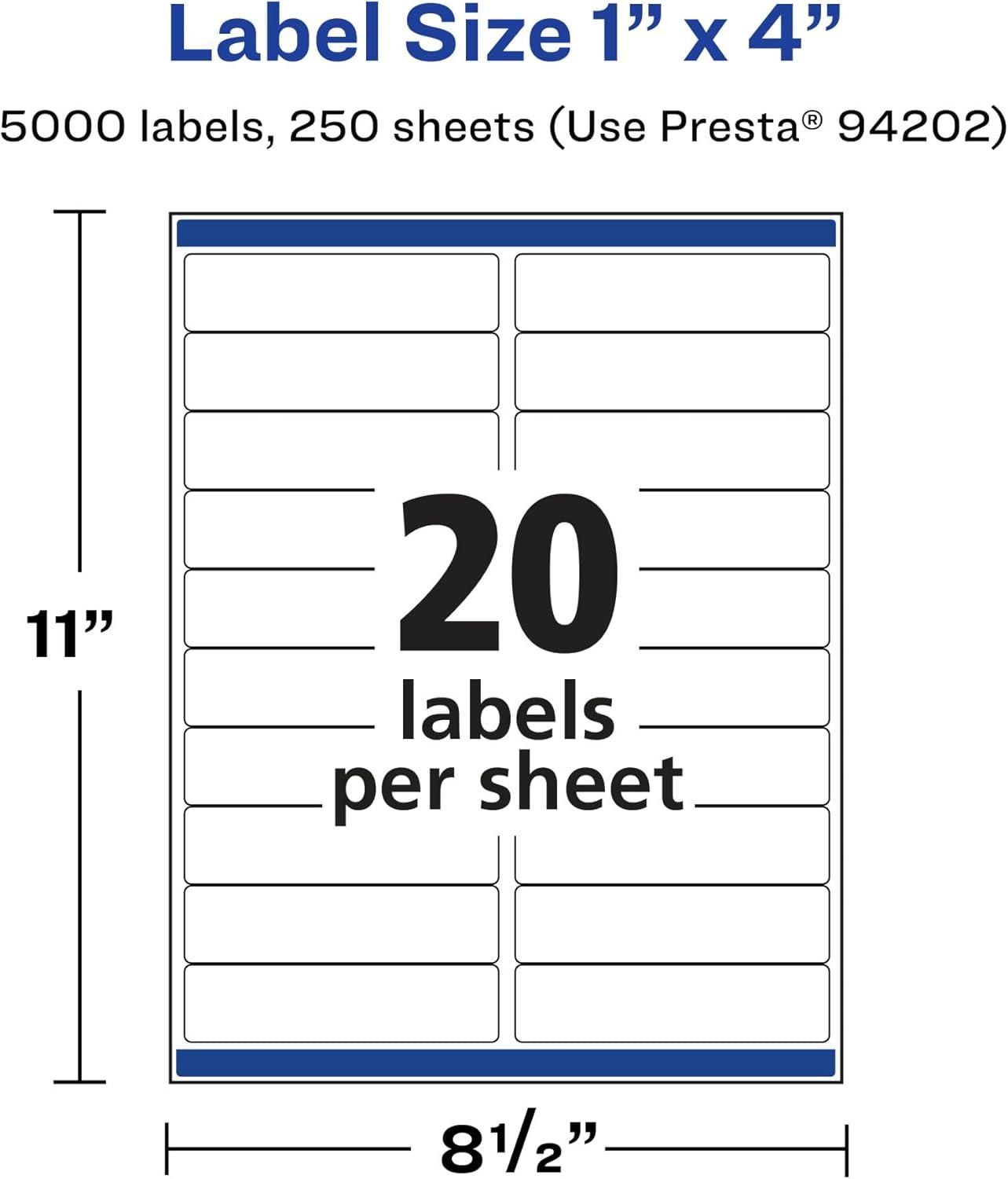 Avery Matte White Rectangle Labels, Sure Feed Technology, 1″ x 4″, 500 Matte White Printable Labels(5 000 Labels)