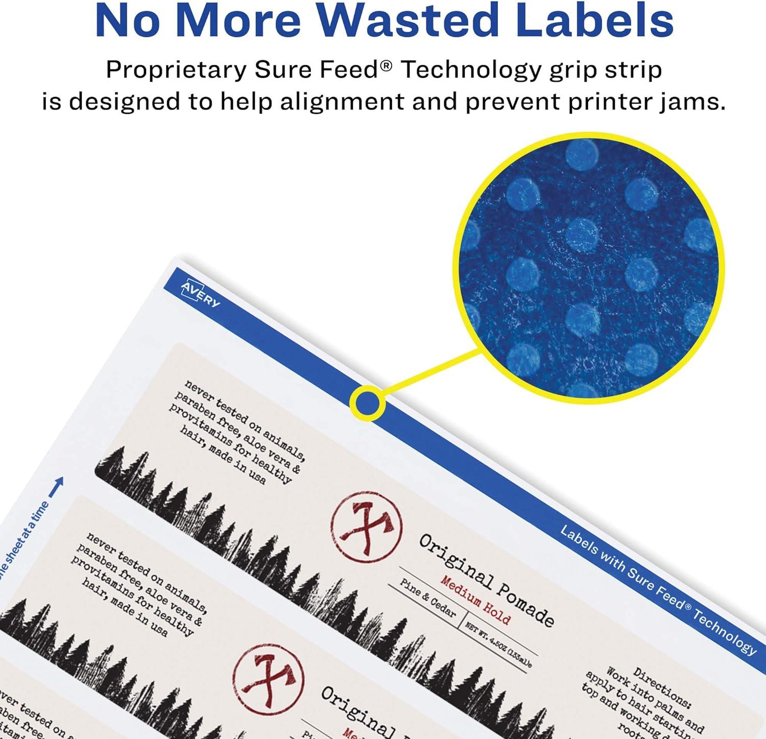 Matte white Avery labels are the perfect choice for any project. The smooth, matte white finish is a great fit whether you're designing product labels, shipping packages for work, making party favors or adding a creative touch to personal crafts or school projects. Each sheet of labels features Sure Feed technology which helps deliver a more reliable feed through your printer to prevent print misalignments and paper jams. The print-to-the-edge feature makes it easy to print beautiful designs that can reach the edges of the label without a border or outline. A strong permanent adhesive is used to ensure that these labels stick and stay to paper, cardboard, plastic, glass, metal and more without curling or falling off. The versatile label shape can adapt to almost any use, just create your design with our free software and print. Avery Design & Print makes it easy to create customized labels from your own home or business so that you can print professional designs with your laser or inkjet printer. Our free browser-based software includes predesigned templates as well as tools for editing text and images so that you can create ingredient labels, price tag labels, barcode labels, return address labels, lip gloss labels and more. Try it out today by searching for Avery template Presta 94225 on the Avery site.