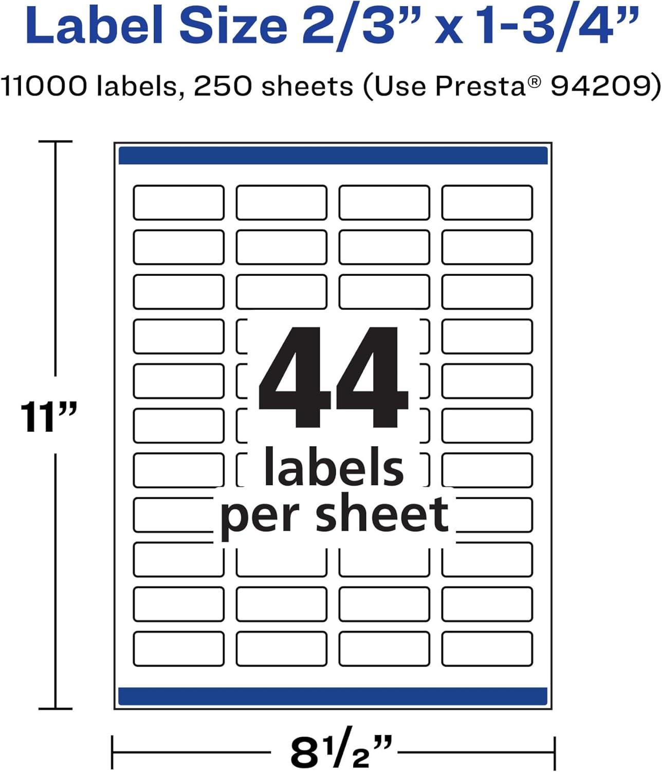 Avery Matte White Rectangle Labels, Sure Feed Technology, 2/3" x 1-3/4", 1,100 Matte White Printable Labels(11 000 Labels)